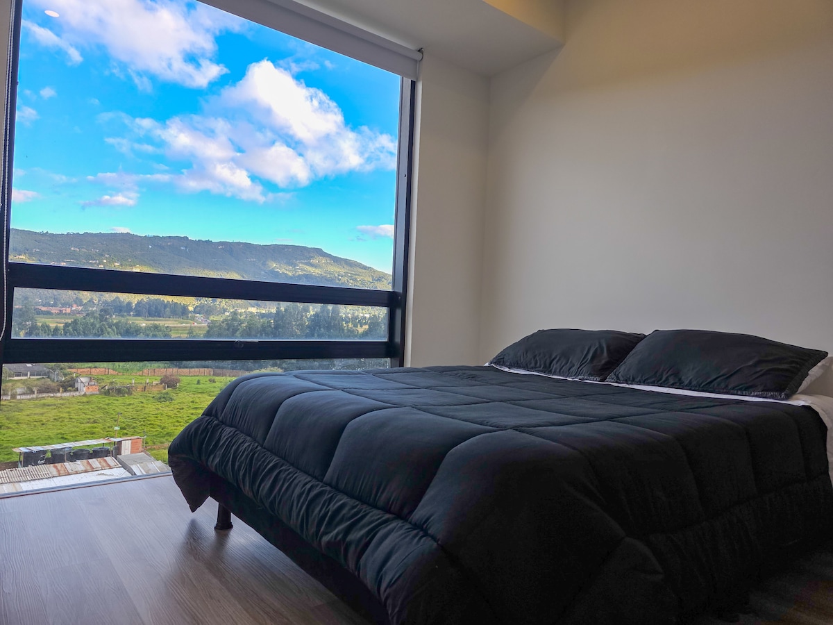 Modern apartment with beautiful mountain view in chia. With gifted kitchen, cable TV, Netflix and sound amplifier. Enjoy a cool and quiet space. Rest from the city in a new apartment, open space. It has a garden, common room, terrace, bbq, gym very well equipped and beautiful view. It has parking, coworking room, games and movie room. Close to the Universidad de la Sabana, Centro Chia y Fontanar. Great location close to restaurants.