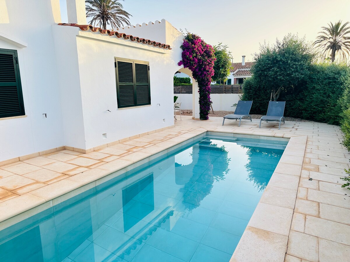 Spacious 130 m² private villa with 250 m² of outdoor space, located in a very quiet residential area close to Ciutadella. Just a 4minute walk away you will find a supermarket, restaurants, and access to the beach of Cala en Brut and Cala en Blanes, no car needed. It features 3 double bedrooms, 2 bathrooms, and a sofa bed, accommodating up to 8 guests. Outdoor area with swimming pool, garden, porch, pergola, and barbecue. Air conditioning, high-speed Wi-Fi, parking, bed linen, and towels included