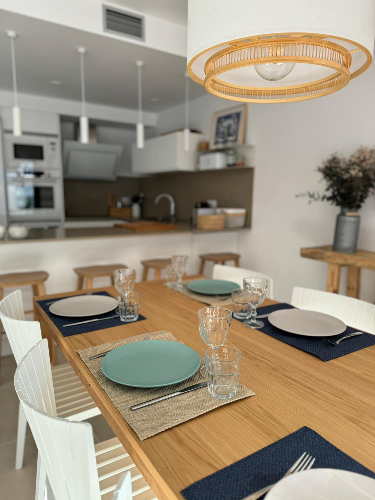 100 m2 duplex with double terrace (50 m2) 30 m from Cala Montgo beach, L'Escala. Grand standing, new (2022) Close to all amenities: wine cellar, food, restaurants, bars. This place is composed of 2 bedrooms: one with a 160 bed and its private bathroom (walk-in shower), another bedroom with 2 beds and its bathroom. A TV lounge with sofa bed. A kitchen with a high-end service.