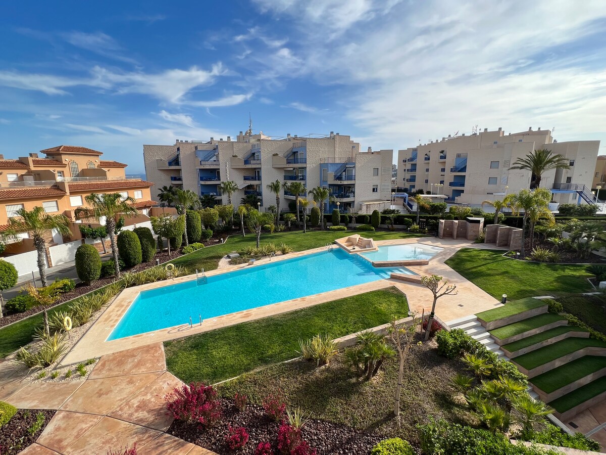 Acogedor y agradable apartamento frente al mar en la exclusiva zona de la Dehesa de Campoamor. Cuenta con maravillosas vistas al mar, a la playa y a la vegetación natural de la zona. Está junto al puerto deportivo de Campoamor y a la playa de La Glea, a la que se accede a 1 minuto andando (50 metros). Dicha playa cuenta con socorrista, 2 terrazas restaurantes asomados al mar así como zona para discapacitados con personal de apoyo, deportes acuáticos y zonas lúdicas. Cuenta con cama supletoria.