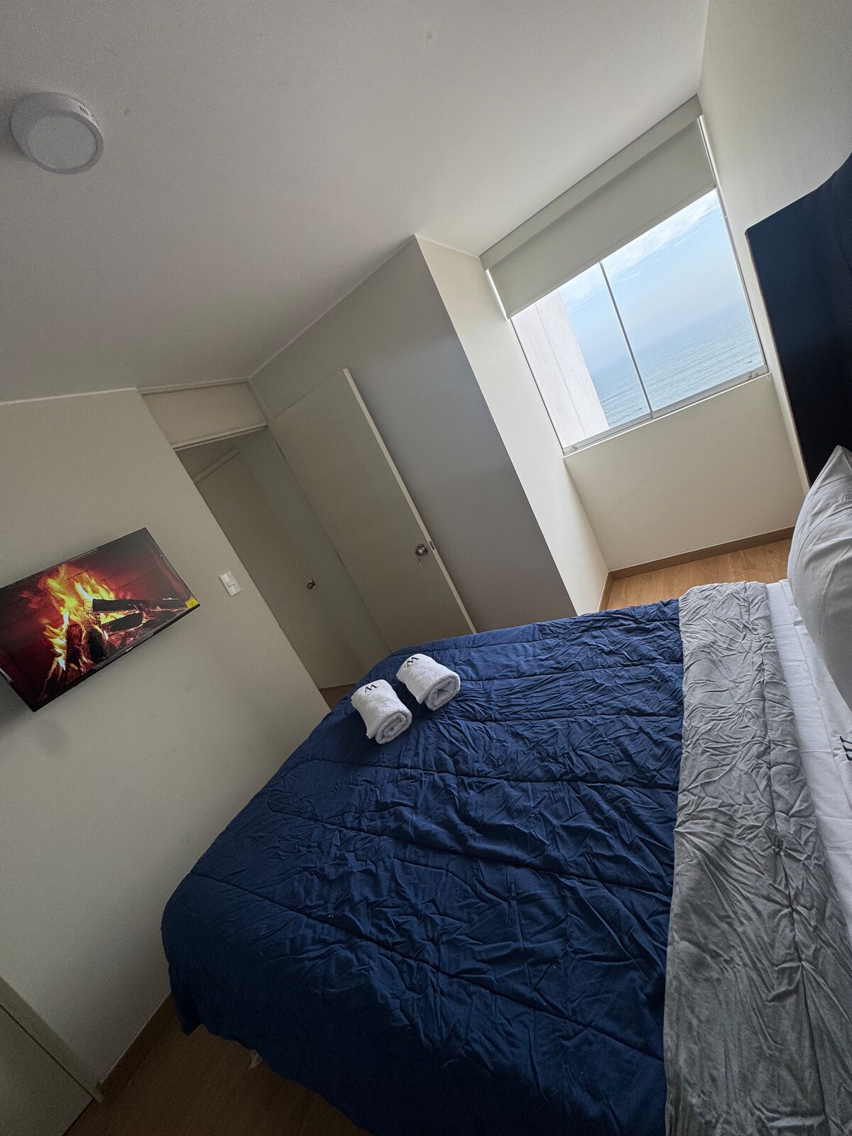 1 bedroom apartment with a double bed and a sofa bed in the living room. On the third floor with partial ocean view. It has common areas such as laundry, barbecue, games, wifi room, jogging area , Amazon Prime Video, Star+(Hulu) and Disney. Easy and quick access to the main avenues of the district, 2 min from the descent to the Costa Verde, 10-15 min from Miraflores and Barranco and also very close to the airport and the district of La Punta, Callao.
