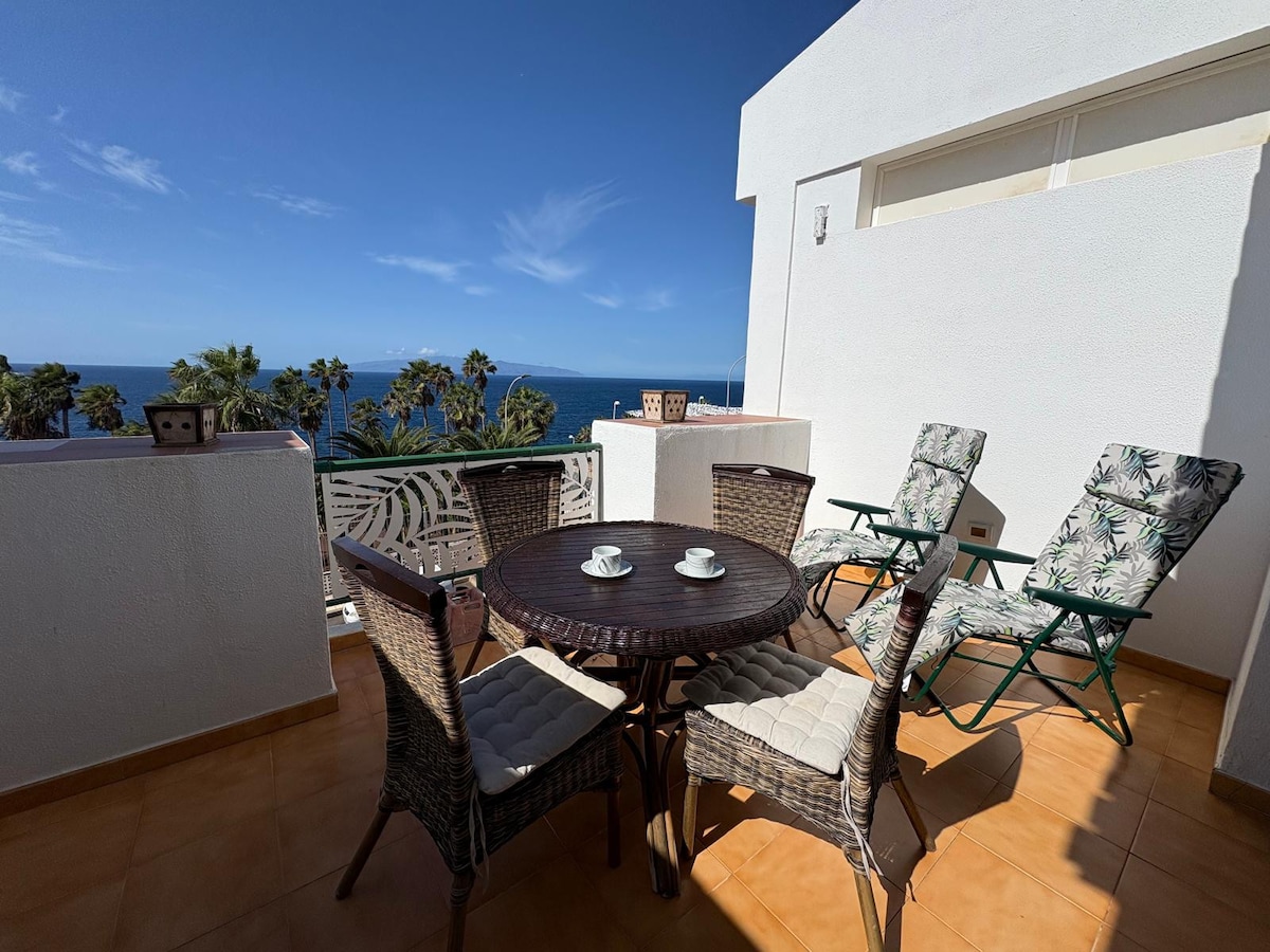 Acogedor y totalmente equipada Olas Suite frente al mar, con acceso directo a la playa 10m, Ideal para los amantes del mar. Muy iluminado y con increíbles vistas. Zona muy tranquila y turística del sur de Tenerife. Alquiler de bicicletas, Excursiones, Supermercado, restaurantes, farmacia, panadería, Centro comercial Rosa Center, muy cerca.