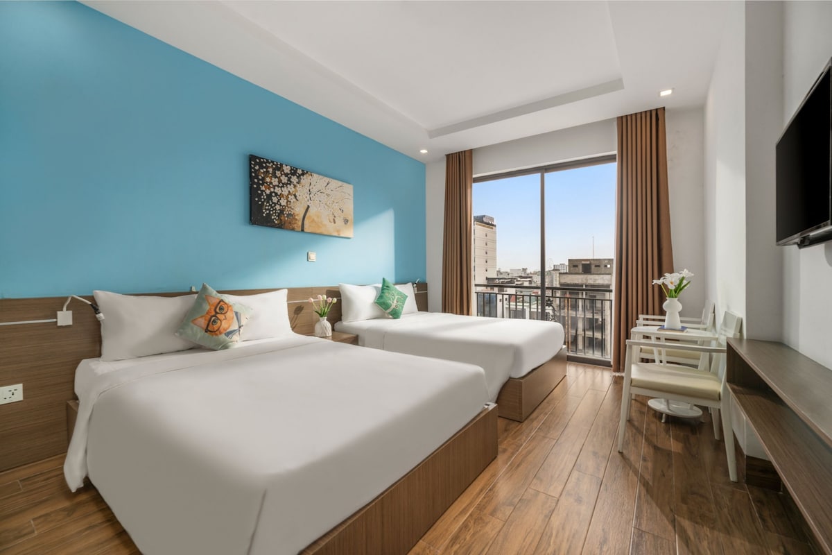 A cozy room with a window in a luxury hotel - 150m from My Khe beach - The beach voted by Forbes as the most attractive on the planet - 2km from Dragon Bridge, Han River Bridge, located in the busiest tourist area of Da Nang - An Thuong, so it is close to famous entertainment and dining spots, extremely convenient for you to explore Da Nang city - Located on a street far from the main road, so it is very quiet for you to sleep well - Outdoor swimming pool and gym on the top floor