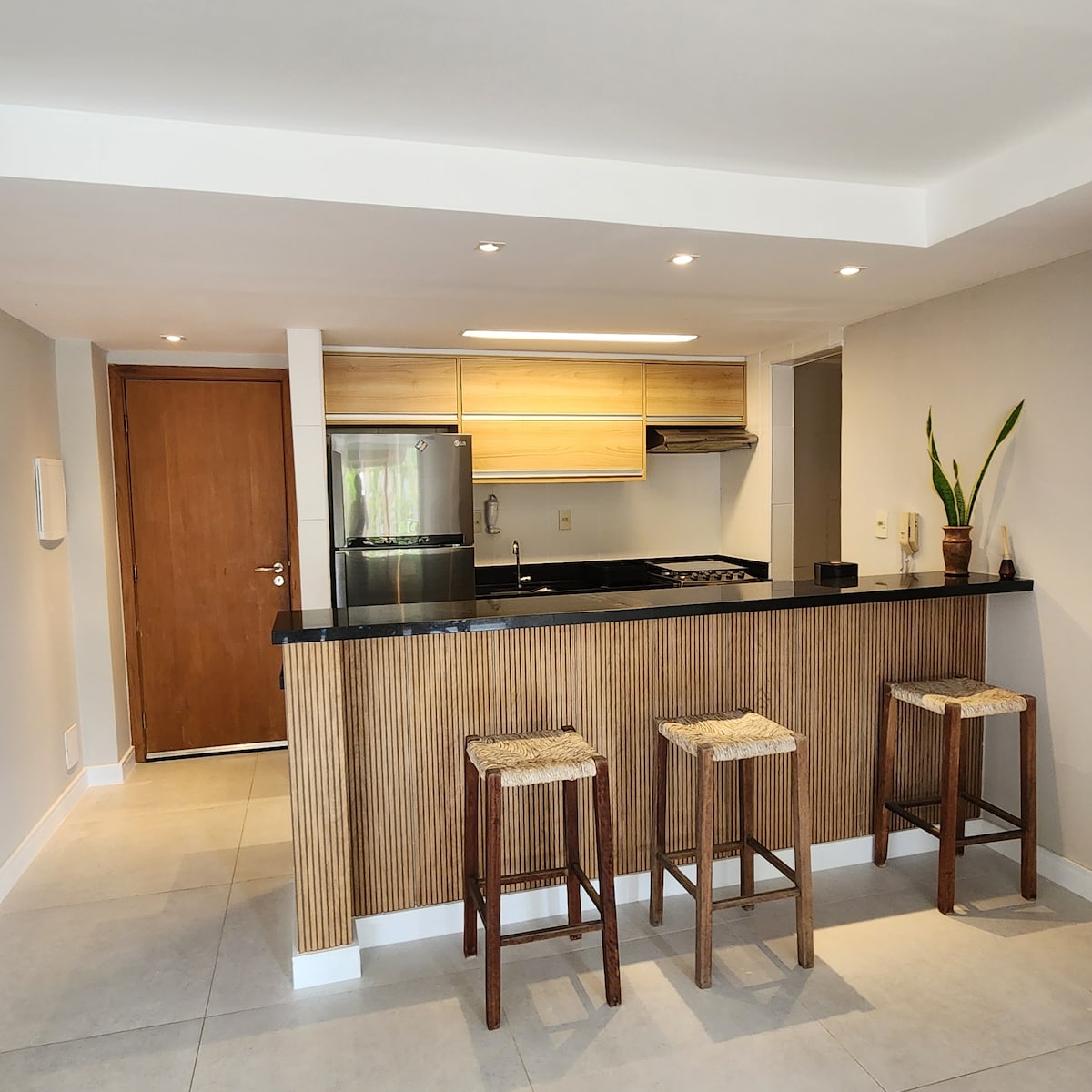 The apartment is located in Village Lagoa Ville, right on the beach. The condominium has a swimming pool, barbecue area, and leisure area. It has two suites, a living room, an equipped kitchen, a balcony, and a small terrace on the 2nd floor. Each bedroom has a double bed, and one of them has two extra mattresses. It has 24-hour concierge service and local security. Next to it is the Itacimirim Lagoon, a calm and secluded environment. It is 5 km from Praia do Forte. Wi-Fi, Netflix, and books.