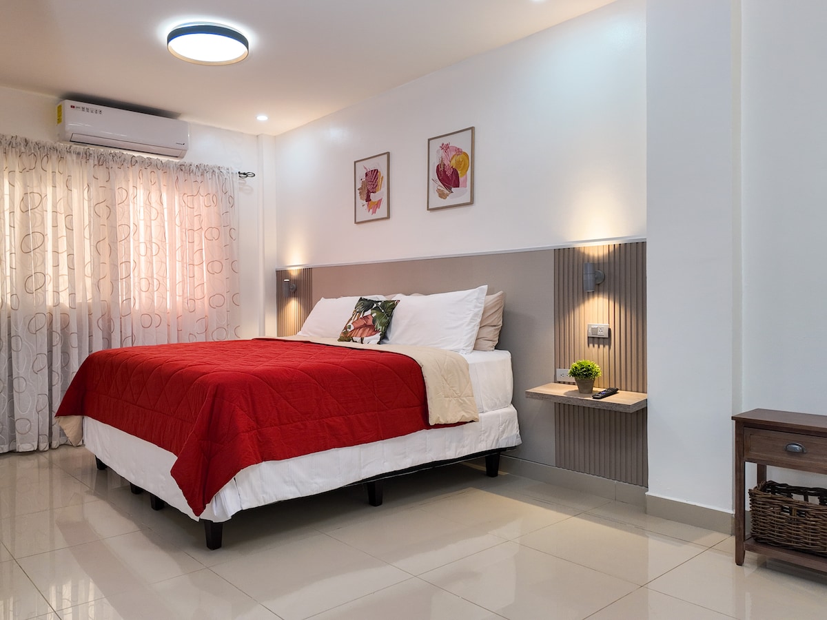 Alojamiento estratégicamente ubicado a orilla de CA-4 que conduce a S.P.S, aeropuerto Villeda Morales , Ruinas de Copan y Guatemala. Dentro de residencial privada con seguridad 24/7. Ideal para familias y viajeros que necesitan reponer energías para continuar su viaje. Amplio estacionamiento , a 3 minutos del parque empresarial Green Valley, café y restaurantes. Ya contamos con dos A/C para que tengas un cómodo descanso.. Descuento especial si solo usarás una habitación. Contáctanos!