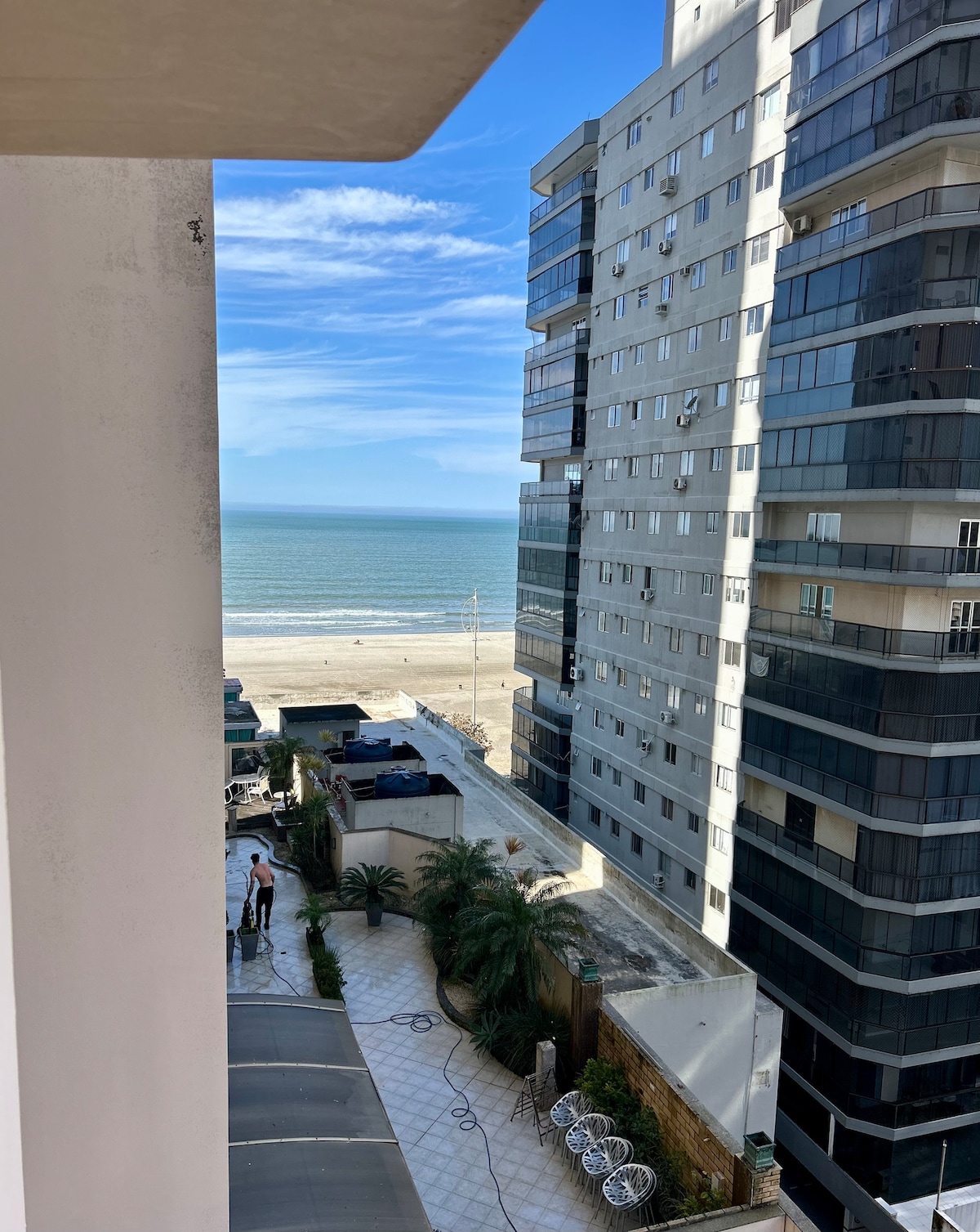 Very comfortable and spacious apartment with a beautiful ocean view from the bedrooms and living room. AIR-CONDITIONING in all rooms. New and complete kitchen, well equipped. Great location in the CENTER OF BALNEÁRIO CAMBORIÚ: close to shopping malls, markets, pharmacy and bakeries. Building on the seafront (side apartment). One parking space with options to rent an extra space. New beds, wardrobes and mattresses. 55-inch TV and Wi-Fi INTERNET.
