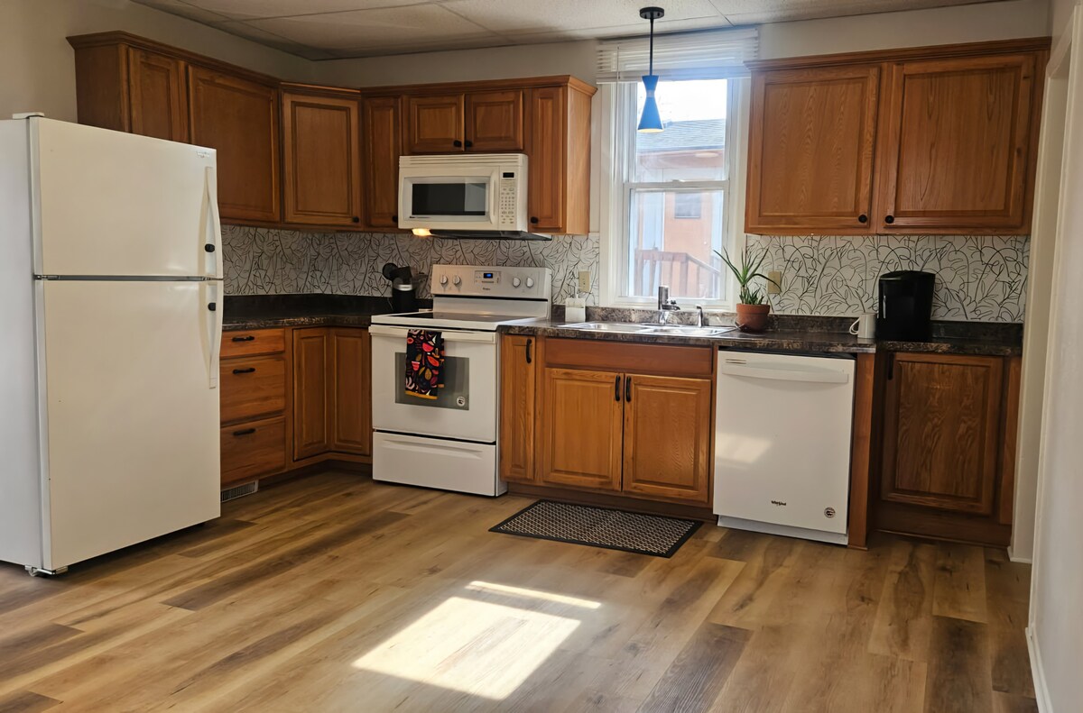 A two-bedroom apartment above Getaway Motor Cafe in historic downtown Carver, MN. Built in 1871, carefully restored, and designed with a Nordic Modern warmth that makes you want to stay a little longer. Jøtul fireplace, gourmet kitchen, private balcony over the creek, and a cafe downstairs for morning coffee and evening cocktails. Sleeps 4. Small-town charm, miles of trails. Come rest.