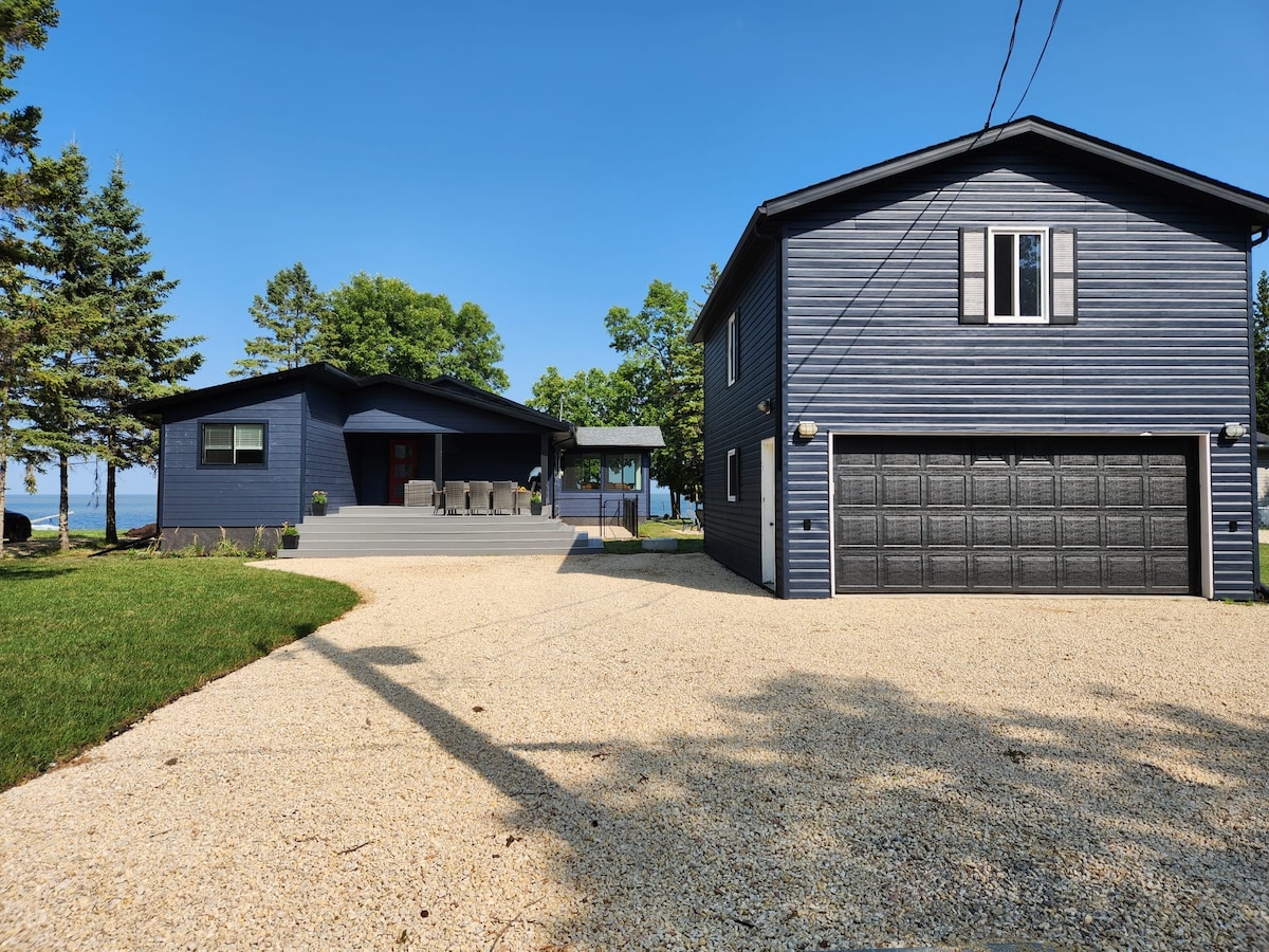 Enjoy Gimli by being 40 paces away from the beach and a short walk to shops, playgrounds, spray park and restaurants. This fully renovated and 4 season cottage boasts comfortable beds, multiple seating areas and a new bright new kitchen. This cottage is ideal for hanging at the beach in the summer, enjoying the fall colours and either ice fishing or snowmobiling in the winter. NOTE- 7 DAY MINIMUM IN THE SUMMER !