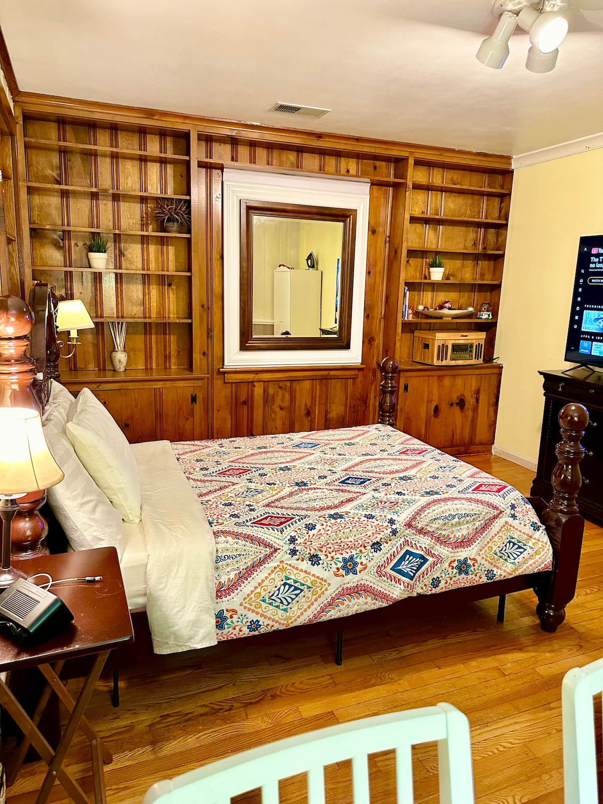Welcome to your cozy one-bedroom retreat, perfect for a relaxing getaway or work-from-home stay. This thoughtfully designed space features a comfortable Full-sized bed with plush linens. A clean, stylish bathroom offers a walk-in shower and fresh towels. Located in a quiet neighborhood, you’re just minutes from local attractions, shops, restaurants, hospitals, and colleges(LU & UL). Available is a large TV with free Netflix, fridge, microwave, Keurig & Coffee. Free parking is available on-site.