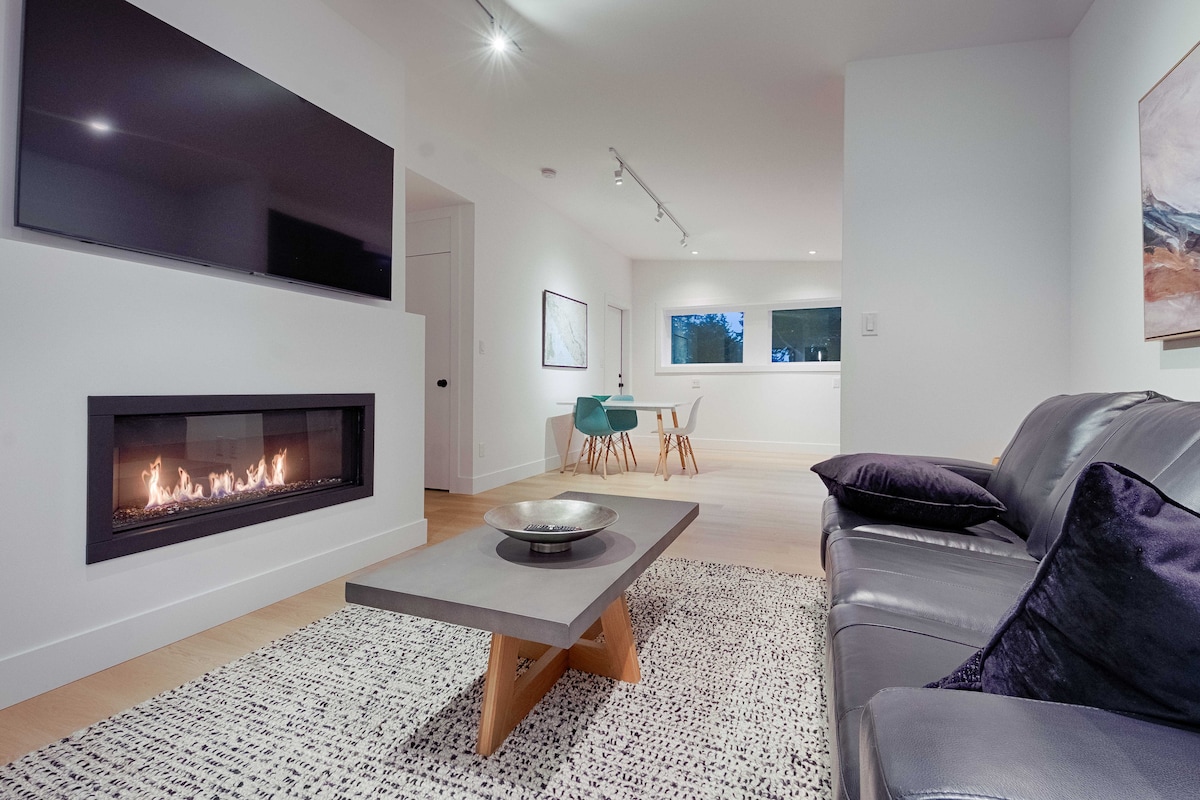 Hi! Newly built bright modernly furnished and designed 1 bedroom 700 sq ft Ocean view suite in beautiful Campbell River. Book here to relish in the luxuries found at the finest Resorts in complete privacy. Enjoy the walk in rain shower with heated floors. Relax by the gas fireplace watching Netflix. Want to get out and about? This easy location is minutes walk from the Sea Walk, Hospital, Campbell River Museum, public outdoor pool and across from a park.