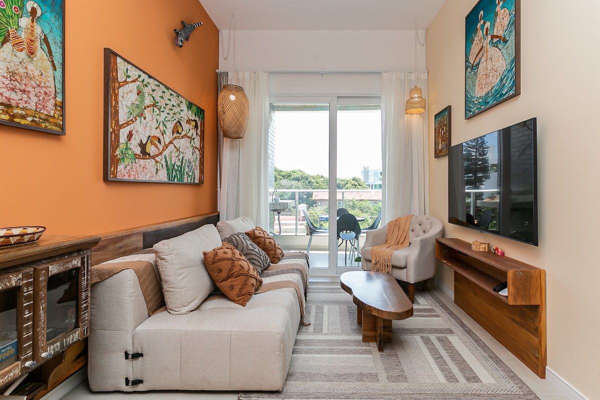 The Studio has been revamped! The project was designed to be new, beautiful and functional. It is close to the center of Lagoa, very green, swimming pool, playground for children, barbecue (with fee), game room, mini market, access to Lagoa and kayak and bike loan Ideal for sightseeing/work. Very quiet, strategically well located on the Island, with easy access to the beaches. Fast and stable internet. Your pet will be welcome (the condominium charges R$ 50. (Payment via Airbnb or at reception)