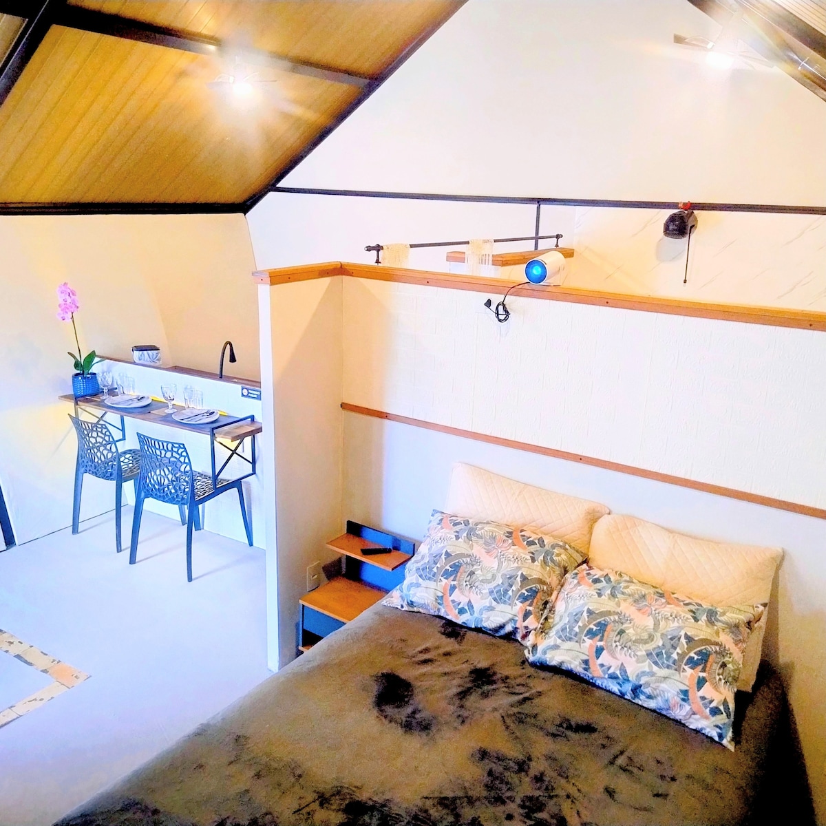 Get cozy and settle into this rustic space. Chalet - Fully equipped for couples. Bathroom with access from the outside area.
