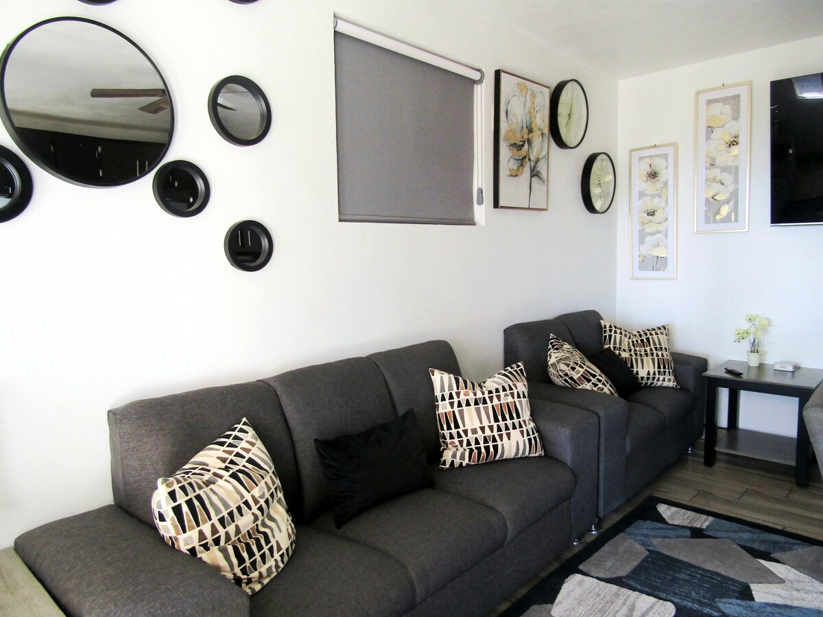 Wabi-sabi Department, Japanese philosophy that finds beauty in the imperfections of life. It has 1 bedroom (king bed), 1 full bathroom, terrace, living room, dining room, 100% electrical installations, laundry center, Nespresso coffee machine, kitchen with microwave, dishwasher, electric stove and utensils to be creative in the kitchen, TV 65" with subscriptions to platforms, board games, tourist guides for the region, chairs, towels and umbrellas to go to the beach.