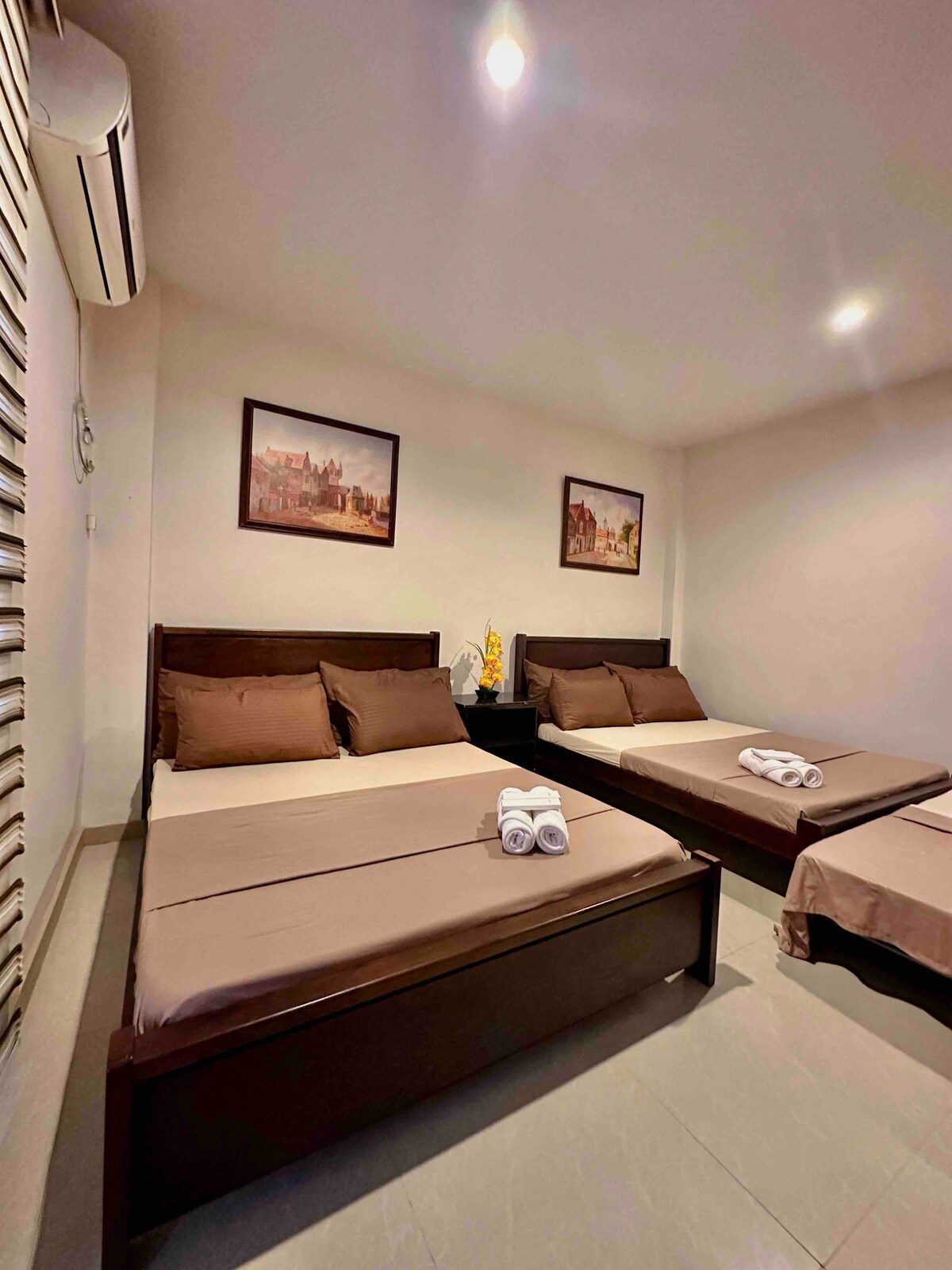 Family Suite Good for 4 to maximum of 6 persons 2 Queen Sized Beds Dining Table Mini Fridge 32” Smart TV with free Netflix Hot & Cold Shower Balcony Access Extra person charge may apply to maximum room occupancy You’ll love the ambiance of this clean and affordable place to stay.