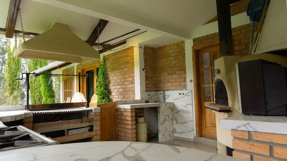 Unplug from your worries in this spacious and serene space. Enjoy fireplace, cantina, dining room, kitchen, corridor, master room, 2 bedrooms with shared bathroom and attic with bathroom and play area. Panoramic view of downtown Paute, soccer and volleyball court, fruit trees, trails. Complete services: water, light, fiber optics, heating. Great for gatherings, walks, and vacations. MAXIMUM CAPACITY 20 PEOPLE