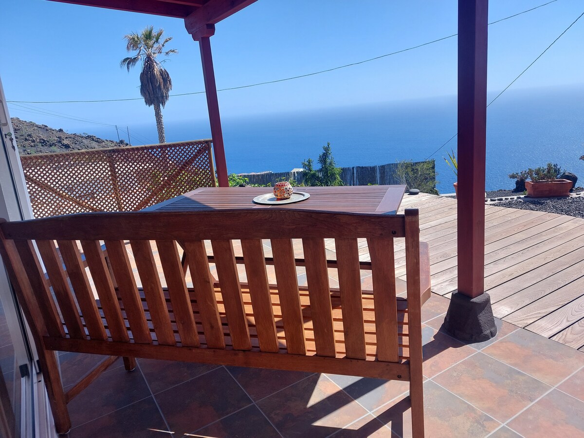 Bright, friendly cottage surrounded by greenery with its own style. In the newly renovated apartment, you have space to relax, cook and eat and work in the home office. Enjoy the sunset on the cozy terrace with couch. From the double bed you can see and hear the sea. The longest and most beautiful natural beach in Tenerife is right outside the front door - 5 minutes' walk to the water. In addition, you are only an 8-minute walk to the Tejita Center with restaurants and a supermarket.