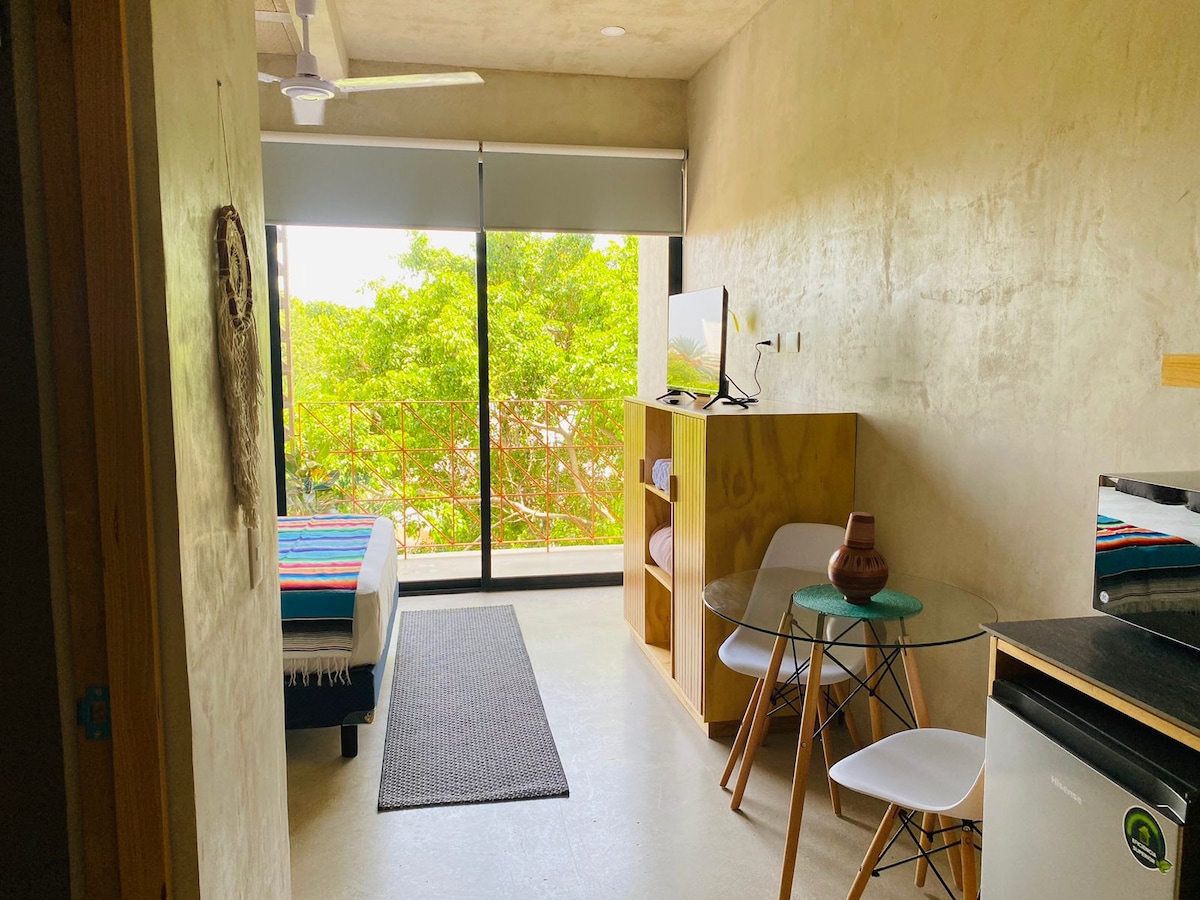 Just a 2.2. Km walk from the Puerto Juárez beach is this private studio located, ideal for getting to know the downtown area of Cancun and the quietest beaches in the area. You'll find just a steps away a local market, restaurants, coffee shops and the bus stop that will take you everywhere. - A solo 10 minutos caminando de la playa Puerto Juárez se encuentra este estudio privado, ideal para conocer la zona centro de Cancún y las playas más tranquilas de la zona.
