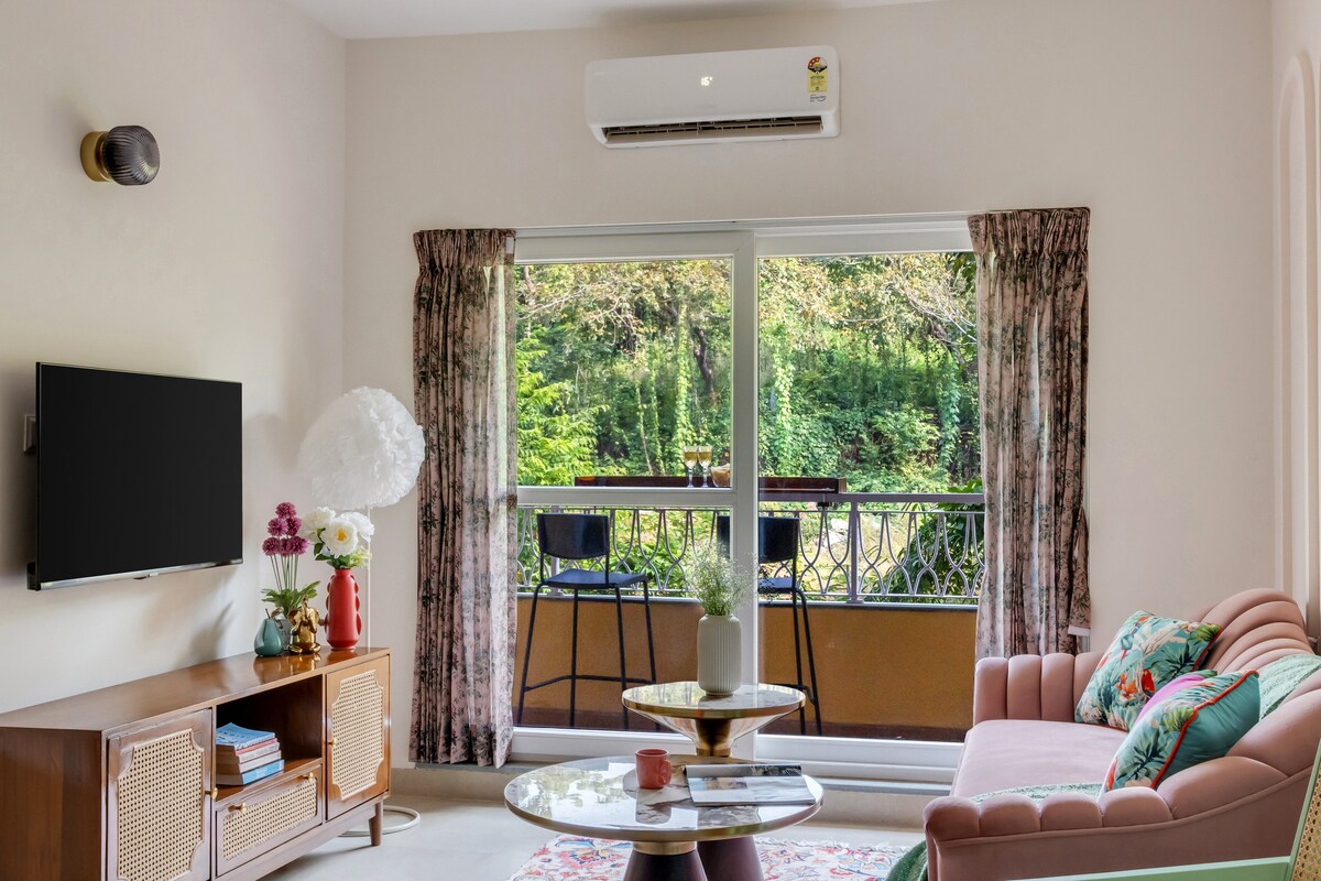 Pastel 1BHK w/Pool & Gym | Candolim, North Goa