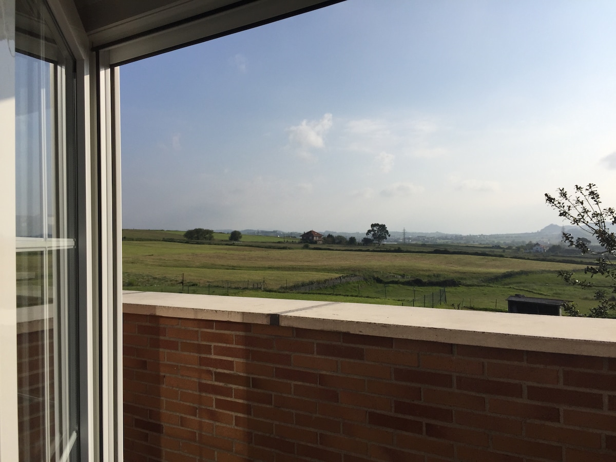 - Spacious apartment for up to 4 people* in a rural property with mountain views. (Read property details for more information) - Independent private entrance and garden. - 10 minutes drive to local services. - Perfect place to disconnect, avoid crowds and relax. - 25 mins drive to beaches and Santander. - Travel cot and low bed available for babies and toddlers -Outdoor covered barbecue kitchen with charcoal and gas grill.
