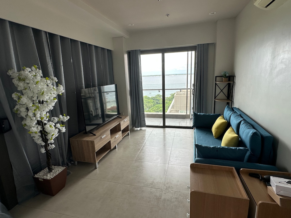 Relax in this entirely cozy, modern and vibrant 1BR condo unit that is conveniently located in ONE MANCHESTER PLACE, Mactan Newtown, Lapu-lapu City. Where it is close to 5 star resorts, restaurants, coffee shops, and supermarket. - 10-15 min drive away from Mactan Airport -Smart Lock Access - 50 Mbps WIFI - Free Netflix - Fully Equipped kitchen (IMPORTANT NOTICE: Kindly review the property descriptions below before making your reservation)