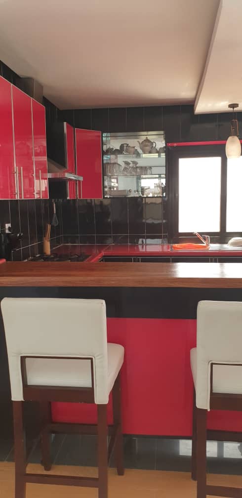 Fatastou is well furnished over 150 m2. It includes: Three (3) bedrooms, with beds and wardrobes, one of which is air-conditioned and the others with ceiling fans. Three (3) bathrooms. Very well-equipped kitchen, very well-equipped living and dining room, furnished balconies. Family space provided. You also get: Bedspread and sheets regularly changed in the 3 bedrooms, soap, toilet paper, napkins, dish soap, dishes, TV with channel subscription, Wi-Fi