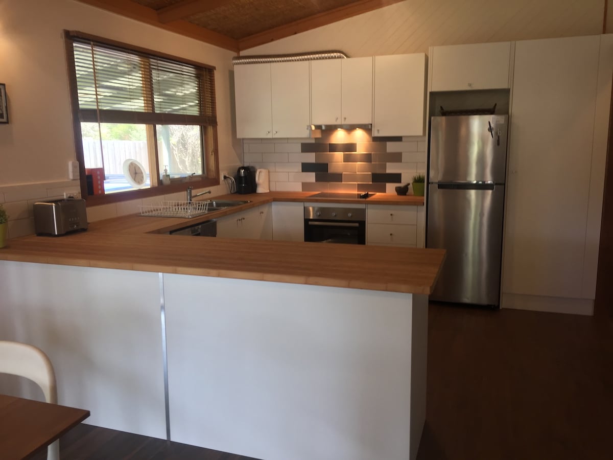Tiny in size but so much to love, our thoughtfully made off-grid cabin features panoramic winery valley views and unique personal touches making your stay extra special. Take it all in soaking in a warm bath on your own private deck, plus a Queen bed, you are surrounded by nature yet still walking distance to 3 award-winning wineries, a hatted restaurant feat. a wine list of "local stars, international pours and a local bracket of curious jewels". Close to beaches and wild coastal nature areas.