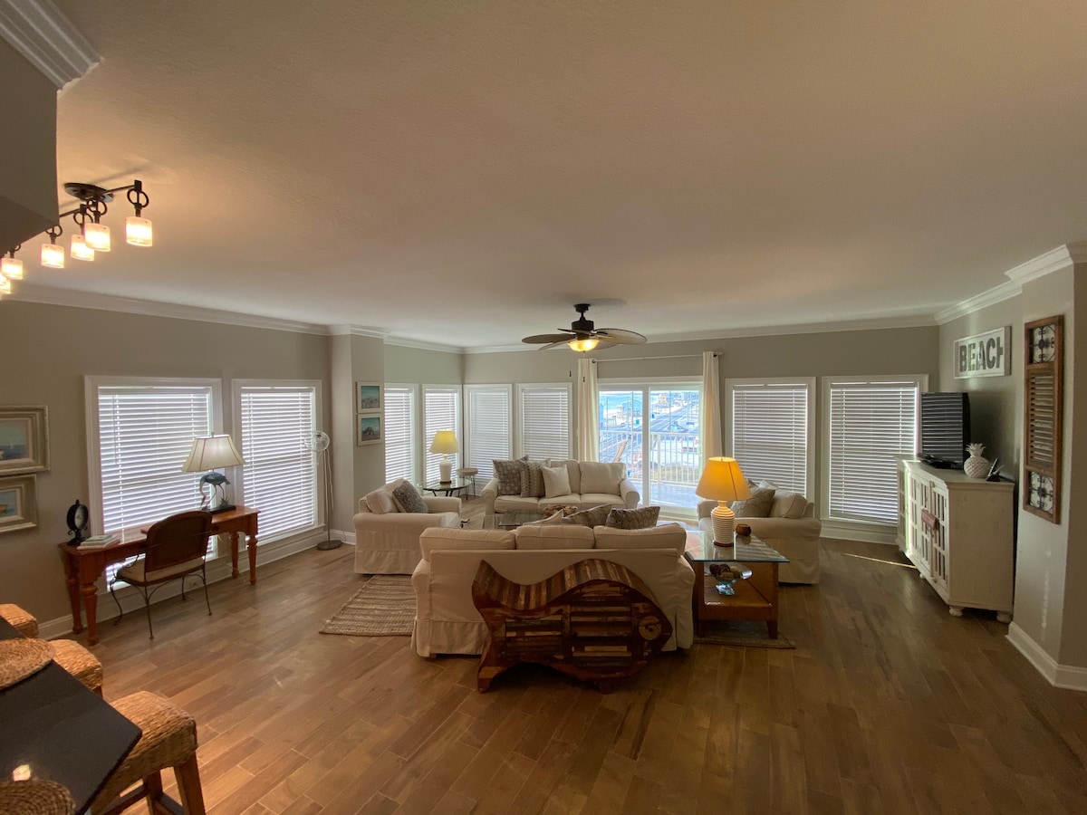 Wonderful 3 bedroom/3 bath condo with twin xl bunk beds across the street from the beach. 1 minute walk to the beach! Has 2 covered balconies, 1 off the LR and 1 private balcony off of master bedroom. Sit outside rain or shine! Huge dining room table to eat or play games with bar for extra seating (or set up as a work space). Provided- 4 beach chairs, tent, beach toys. No beach towels provided. Has community pool and hot tub. Minimum age is 25 years old.