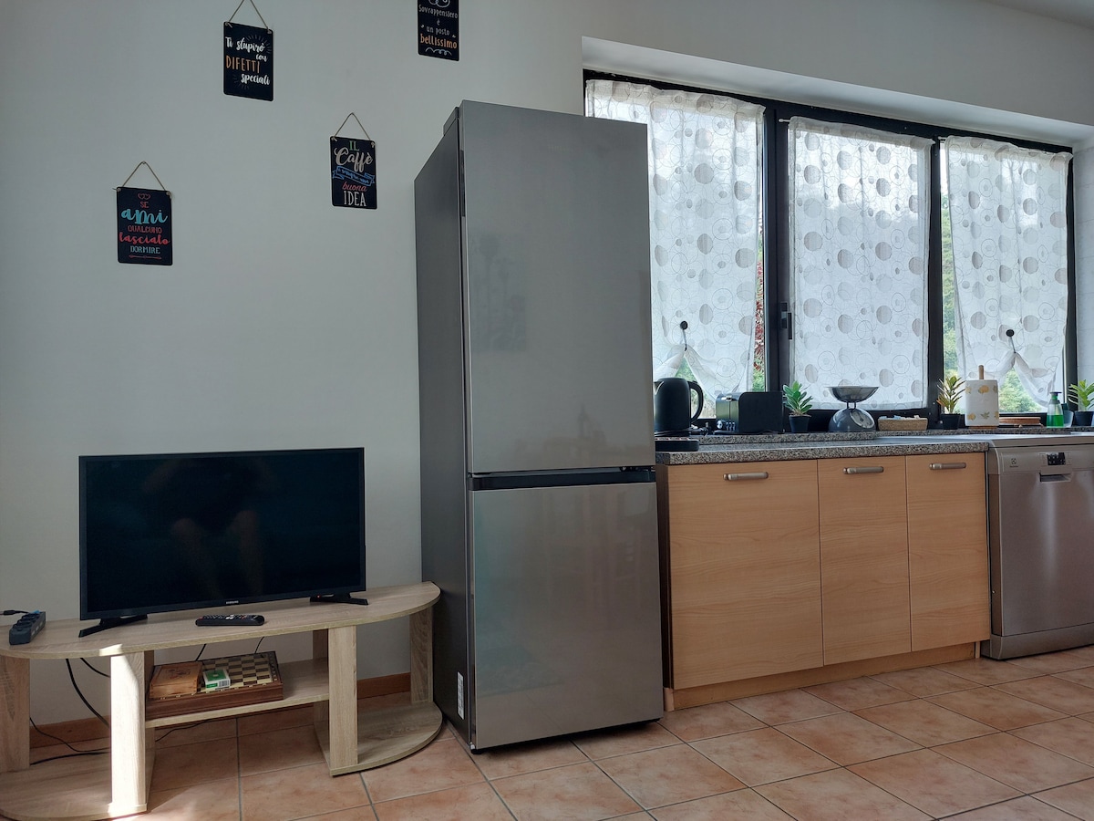 NEW COLORS AND KITCHEN Alps and Garda lake experience in one. Single 1860 house in a small village lost in the mountain,rebuilt and refurbished as a 90 sq. meter minimal apartment on two floors. Private entrance,spacious living room ,55 inch tv, separated kitchen, bedroom and bathroom on the top floor. Youtube premium Available indoor bike storage free parking You can easily reach Garda lake and the surrounding mountains. Extra free beer tasting experience by BirrificioRethia