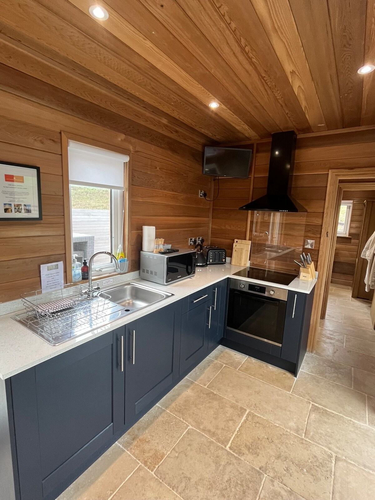 Orchard Hideaway is a perfect place for couples or a family. Panoramic views over looking the Tweed Valley to the Cheviots on the horizon. Open plan kitchen/ dining /sitting room / large windows, wood burner. The outside. Hot tub is fired by wood and perfect for relaxation. Kelso, a charming market town with Floors castle, Kelso Abbey - 4 miles. This year an inside Padel court has been built in the shed and booking is essential. Tennis court , no booking required for tennis. BBQ.