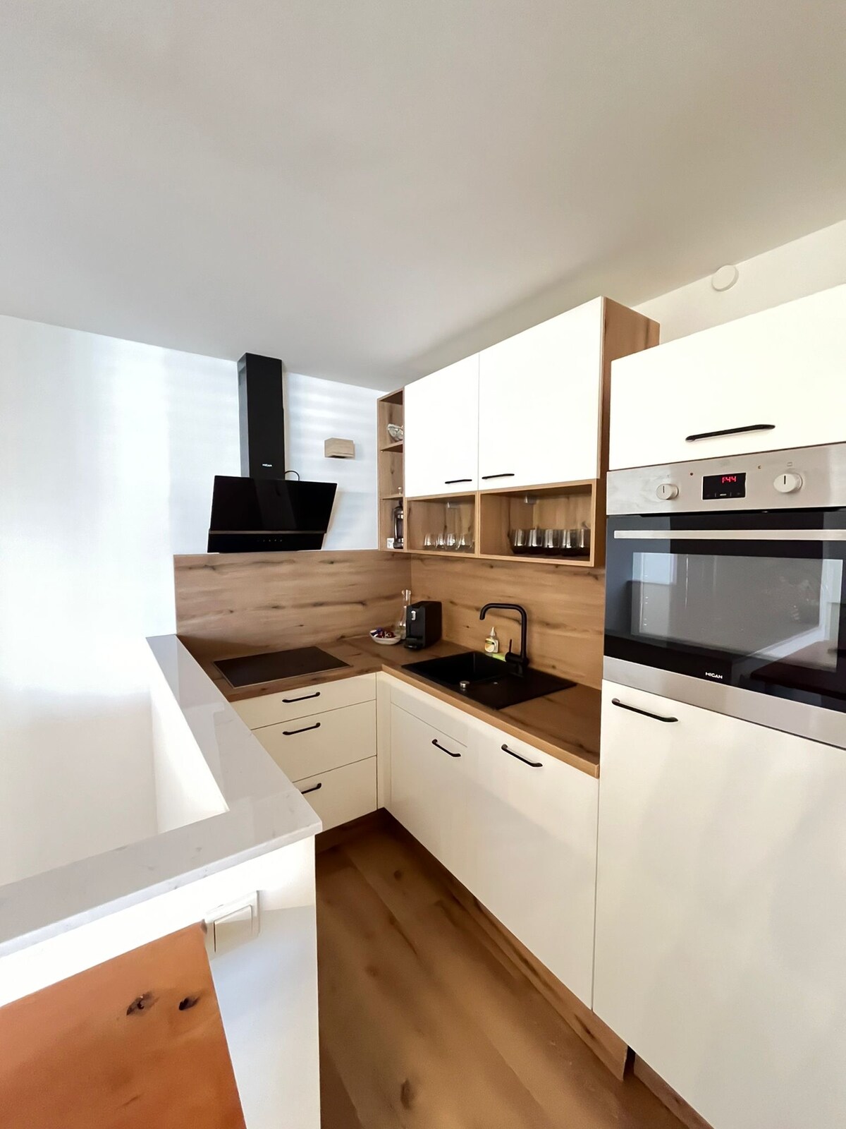 The Franzosenstüberl is a rustic old grain box and offers the highest living culture for two to four people on 40 m2 (two floors). On the ground floor there is a fully equipped kitchen/living room, a small bathroom with shower and toilet, hairdryer and plenty of shelves as well as stereo system and Wi-Fi. The upper floor consists of living room, built-in double bed and single bed as well as a couch (also a crib is possible). A flat-screen TV is available for long evenings.