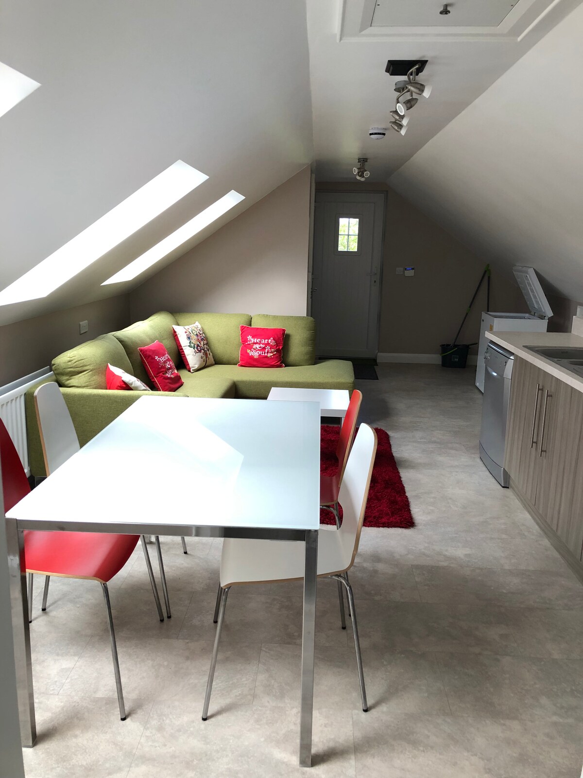 Convenient cosy apartment located close to Dungannon town centre. The apartment is beside the main house. The apartment also has a home gym with a range of fitness equipment. Please note there is no cooker but microwave, kettle and toaster available