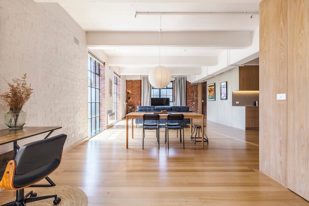 An architecturally designed warehouse conversion located in the vibrant neighbourhood of Fitzroy. This thoughtfully designed space features designer furniture pieces and curated artwork. Located next to the iconic Fitzroy Swimming Pool. With two private bedrooms and two terraces, this apartment offers ample space for relaxation and enjoyment. The spacious bathroom boasts a luxurious free-standing bathtub, perfect for unwinding. The modern kitchen is fully equipped with everything you need.