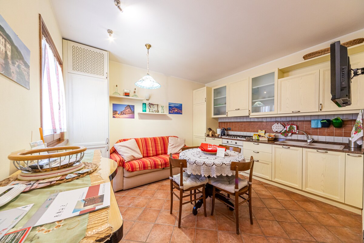 Explore Tuscany in a beautifully decorated 2-bedroom, 2 bathroom apartment with all amenities & a log fire. Welcome to your luxurious home in the heart of Tuscany, Italy, where every moment will be a new adventure. This beautifully designed and well-furnished apartment is located in a restored farmhouse, surrounded by olive groves, vineyards, and rolling hills, offering you the best of Italian living.&