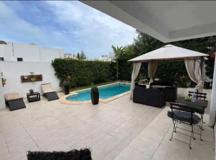 Experience true luxury in this stunning loft, nestled in a lush, green setting in La Marsa. This tranquil escape features a private pool (6x3m), a spacious garden, and modern perfect for those seeking relaxation and peace. A sophisticated fireplace, a rare feature in this area, adds a warm and cozy ambiance for cooler evenings. Located just a 10-minute walk from the best restaurants and trendy spots in La Marsa, easy access to the professional districts of Lac 1 and Lac 2.
