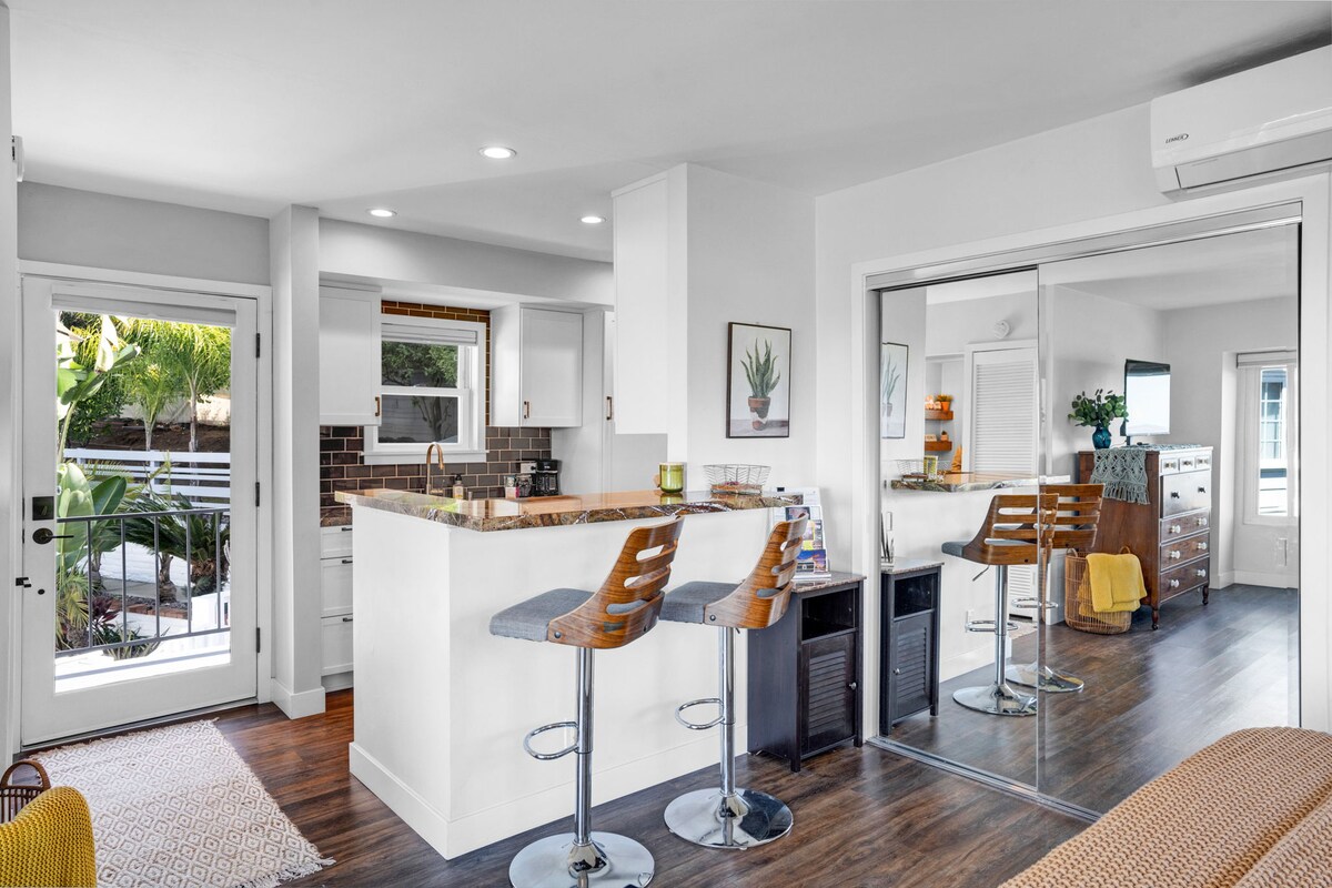 SUNRISE PERCH - A standalone guest house, perfect spot for your San Diego stay! Enjoy inspiring sunrise views from the deck or relax indoors with super fast WiFi and a 43" TV. Enjoy a full kitchen! The king bed is super comfy and the bathroom is stocked. The space is only for those looking for quiet. No partying/loud socializing. Families welcome! Located 20 min from downtown San Diego and 25 min from the nearest beach (Ocean Beach).