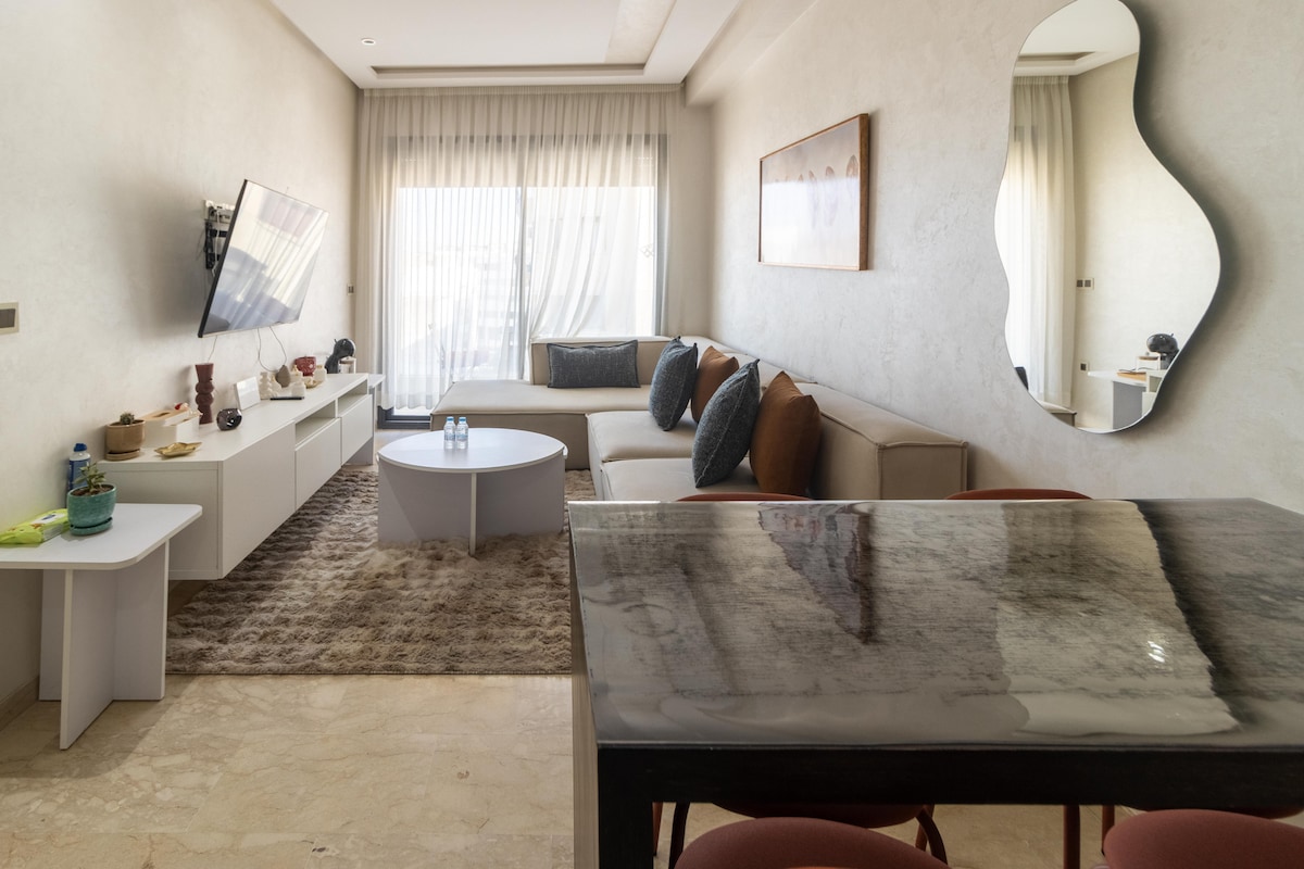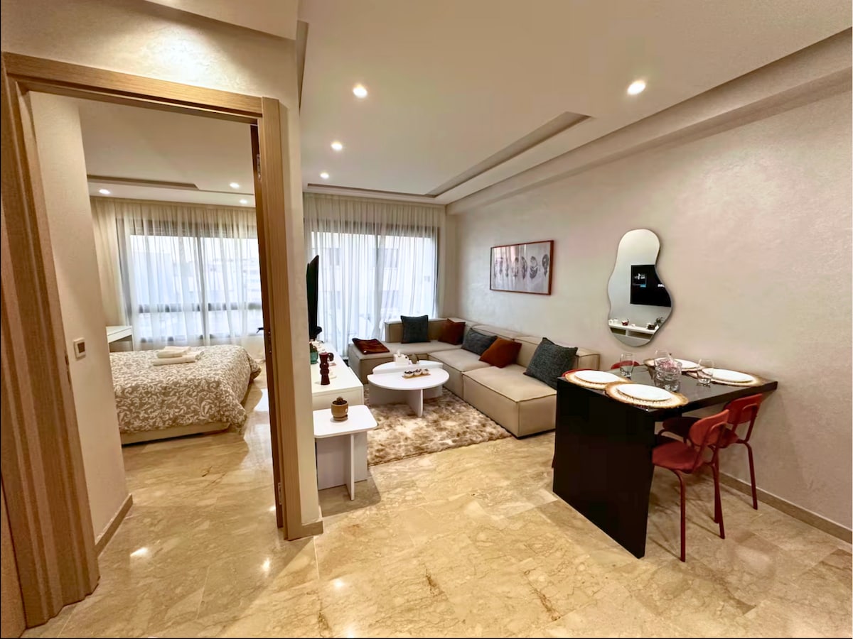 Unwind in our luxurious studio, where comfort meets convenience in one of Casablanca’s most desirable neighborhoods. Featuring elegant design, a private gym, and a spacious balcony—perfect for your morning coffee or enjoying breathtaking evening views. With top restaurants, shops, and must-see attractions just a short walk away, you'll have everything at your doorstep. Whether you're visiting for business or leisure, it's the ideal escape to relax and recharge.