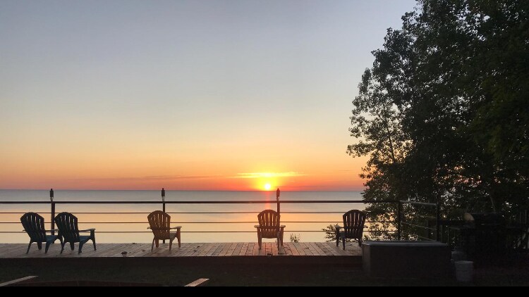 Come stay with us at Bird Creek Cottages where a short 5 minute walk will take you to the downtown area, where there are many shops, storefronts, restaurants and the Farmers Market every Saturday to take in. Enjoy the 180 degree view of beautiful Lake Huron, Watch the sunsets from your Patio. Bird creek beach is just a short walk. Take a Fishing Charter or a boat tour out to Turnip Rock, book with the host. Note: the cottage is located behind the main house and barn. Right on the creek
