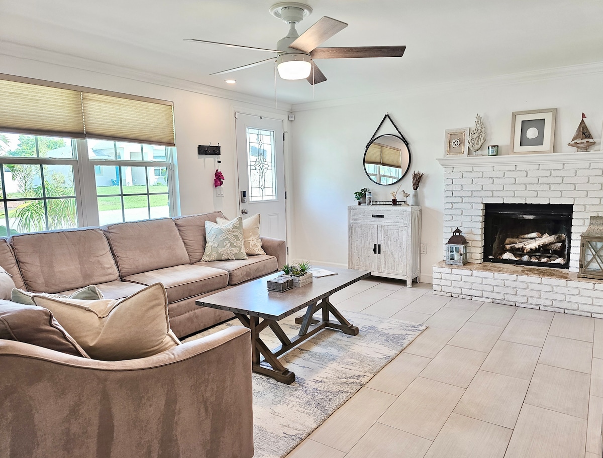 Welcome to PalmHaus, a bright and modern 4-bedroom Florida vacation home perfect for families and groups. The home features 2 king beds, 1 queen, and 2 twins, a fully stocked kitchen with a coffee bar, and a cozy living area with an electronic fireplace. Enjoy your private heated pool (up to 87°F), outdoor TV, BBQ grill, poolside seating, and beach supplies. Relax, unwind, and enjoy effortless coastal living.