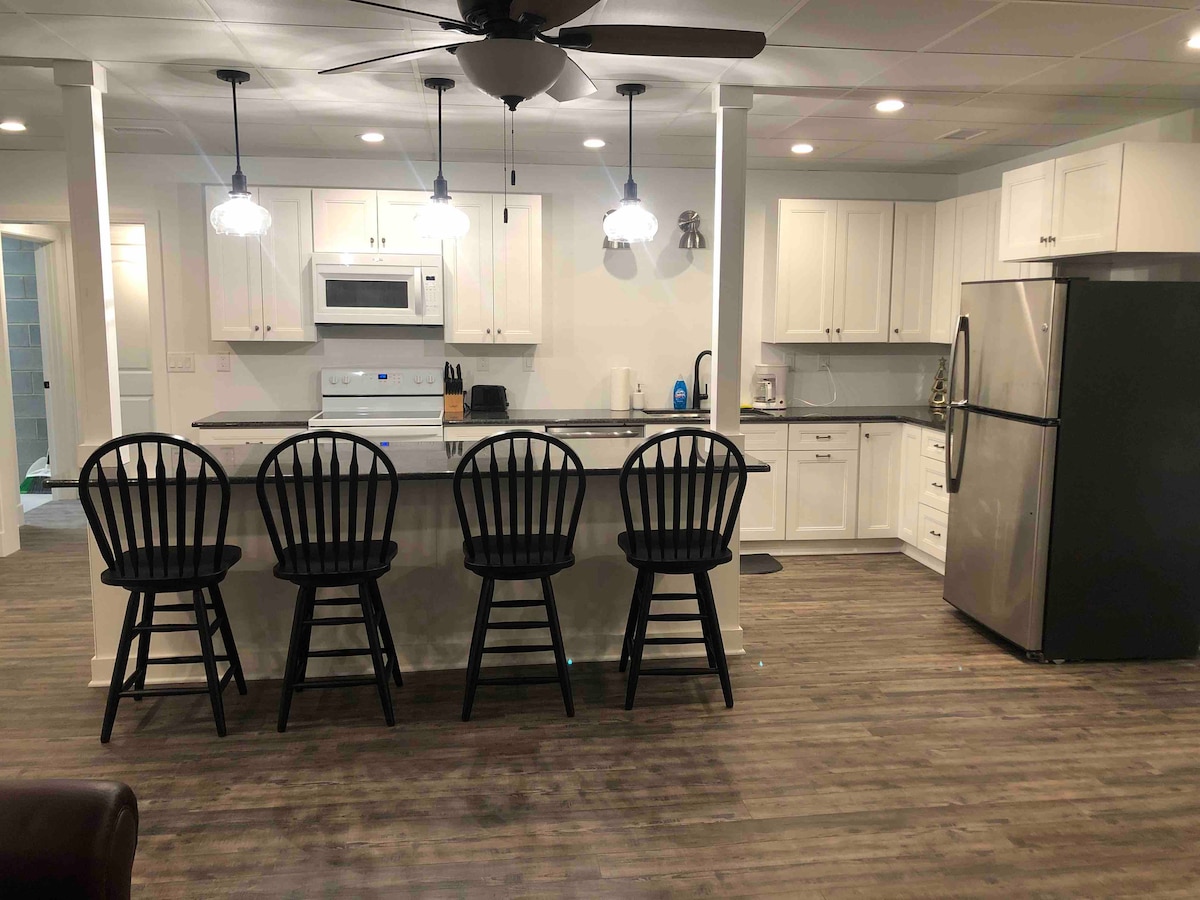 The Blue Heron Suite, just like the majestic bird, is a symbol of patience and good luck. Perched above the Lake with direct access and views from every window. This suite is the entire lower level. Kayak over to the Waterfall dam. Swim out to a sandbar. Boat Rentals are within walking distance. Deep water at dock year round. Grill out over the outdoor charcoal grill , or check out the local eateries. Minutes from shopping, restaurants and local night life.