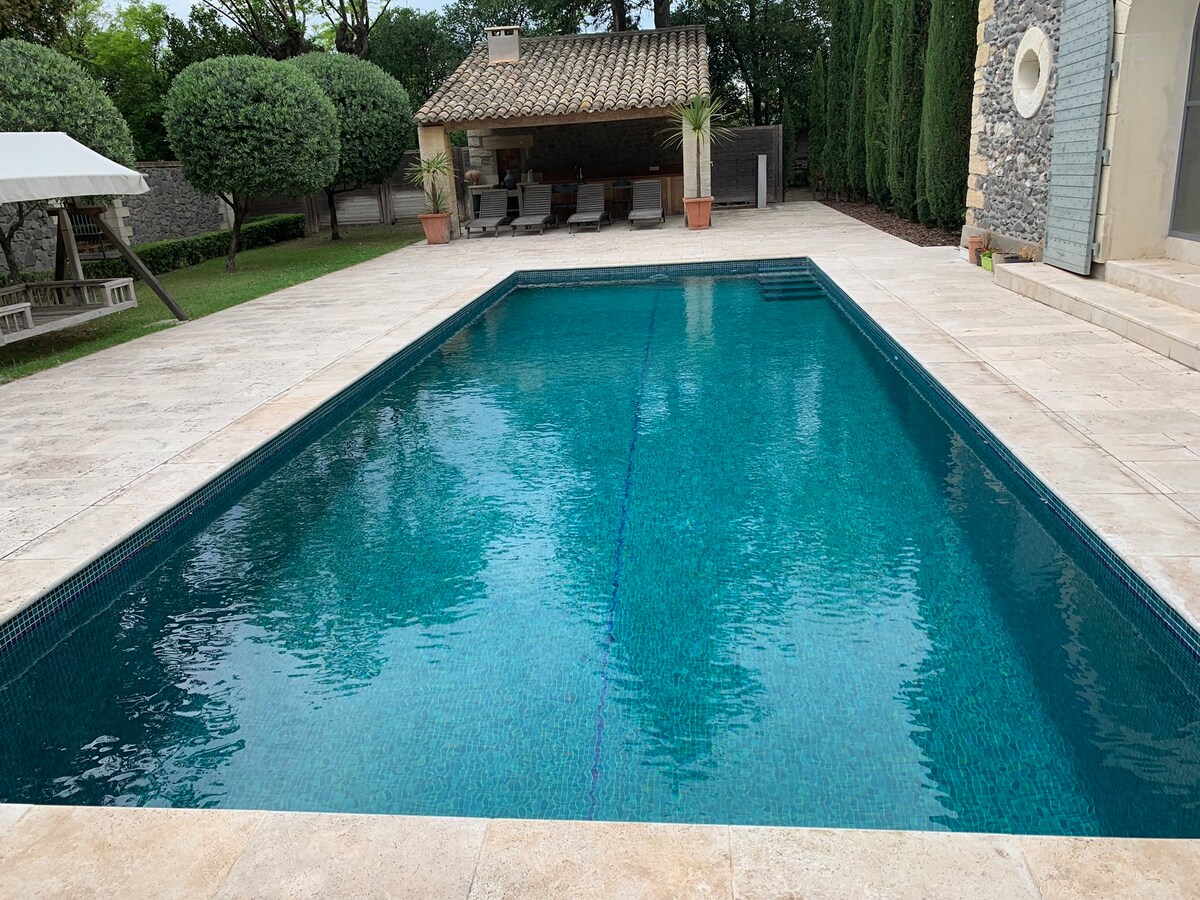 Not shared and nestled among holm oaks in a protected environment and surrounded by vineyards. The fully enclosed 2 ha estate is less than 5 minutes from all amenities, exceptional 360° view. Air-conditioned rooms. Outdoor (2 ha enclosed). 10x5 heated pool, spa, pool house, BBQ, cloakroom/WC, shower. Private terrace. The area offers many cultural, sports and festive activities nearby Possibility to organize a custom weekend.
