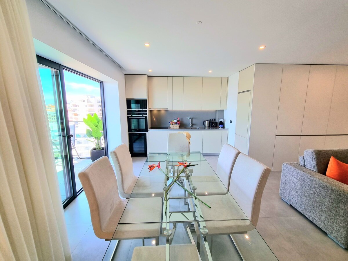 Fantastic and luxurious one bedroom apartment, just 50 meters away from the Quarteira beach, Located in quiet neighborhood, the brand new building is equiped with a swimming pool and a private area with sun beds, The apartment has a wide and very sunny balcony with a side sea view to both sides, and is equiped with air conditioned in bedroom and living room, as well as all the amenities necessary for a confortable stay. Private parking is included.
