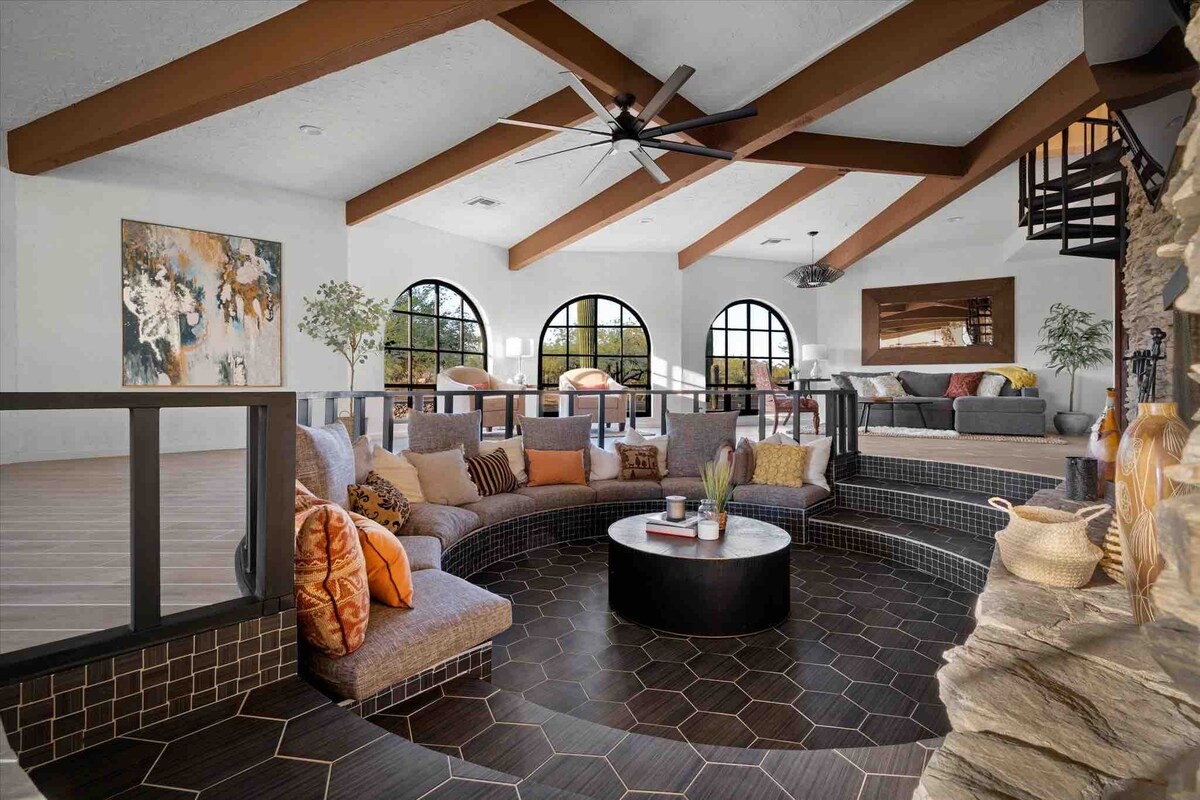 Welcome to Casa Cactus, a modern bohemian-inspired, newly constructed Villa nestled in the Tonto National Park in Scottsdale. 🌵 30 feet Saguaro -- it's right in our backyard! and estimated to be over 150 years old! ✨ Stargazing & Astronomy 🏜 Endless Mountain & Desert Landscape 🌅 Unforgettable Sunrise & Sunsets 📽 Projector & Screen for Outdoor Viewing 🔌 30 AMP Outlet for EVs & RVs 🔥 Indoor Fireplace 📺 Large Roku TV 📶 80+ Mbps WiFi 📏 2200 sqft - 4 Bedroom