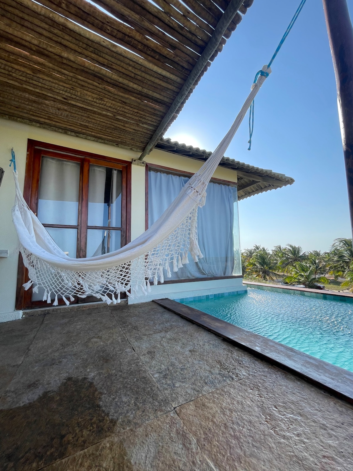 Our bungalow is right in the kitespot with a beautiful sea view! We are very happy to have you! It consists in a comfortable king's bed, a couch/bed and an extra mattress. It has Wi-fi, hot shower and a small but complete kitchen. It was designed to generate the least environmental impact as possible. We built by hands using only noble Brazilian demolition and recycled wood. Designed to provide a lot of natural lighting and ventilation, all done with much love and care to welcome you.