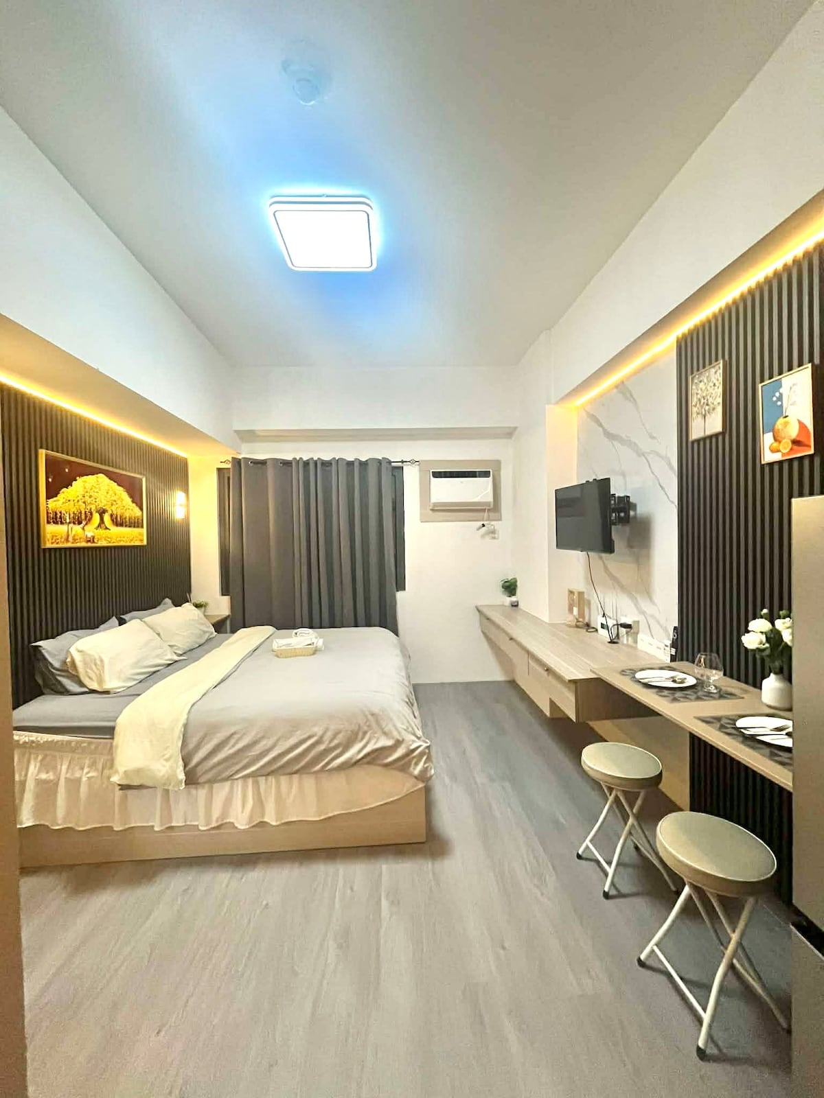 Discover a quality and comfort property, nestled among other beautiful rental units in sought-Lahug, near IT Park. Inclusion ✅1 queen size bed + sofa bed ✅ hi-speed Wi-Fi (200 mbps) ✅Smart tv with Netflix ✅toilet with bidet ✅with cold and hot shower ✅kitchenware and kitchen utensils ✅complimentary toiletries and towels provided Amenities ✅Swimming Pool ✅Fitness Gym ✅Children’s Play Area ✅Sauna Terms & Conditions: ✅check in time @2pm ✅check out time @11am ✅strictly no smoking ✅no pet allowed