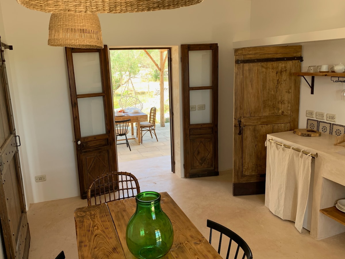 Dimore del Cisto is a property surrounded by olive trees and Mediterranean scrub. The property consists of 2 units for a total of 8 beds, divided into 2 trulli used as bedrooms. At the service of which there is covered space, air conditioning, large shared bathroom for the two bedrooms, kitchen and laundry. The second unit consists of 2 double bedrooms with air conditioning, en-suite bathroom and TV, eat-in kitchen and outdoor dining area.