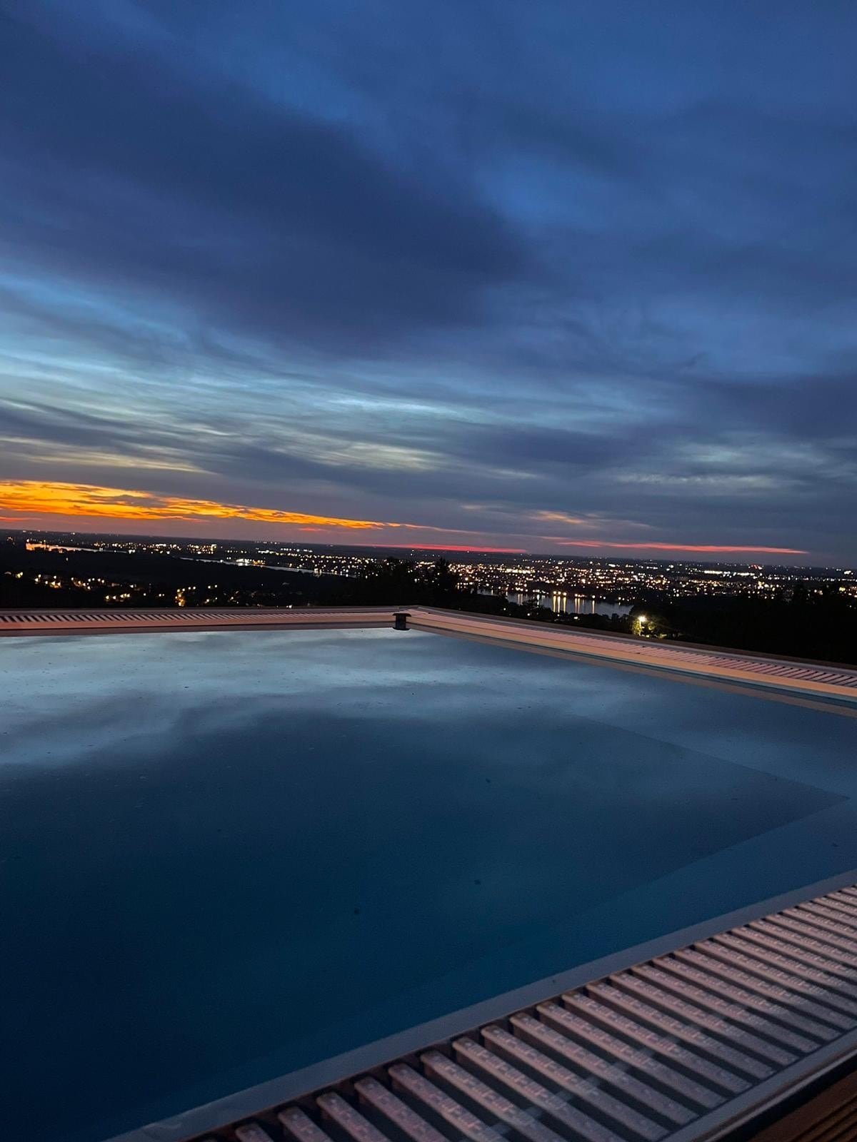 A house with a beautiful view of Novi Sad, Vojvodina and the Danube River. Just 10 minutes from the center of Novi Sad. It has a living room, dining room, kitchen, bathroom and 3 bedrooms. Open - closed terrace with a view of the city, offers the most beautiful view of the sunset and has 35 seats, with a fully equipped kitchen, grill, sound system and toilet. In the yard there is a children's playground with slides, a swimming pool and a fire pit where you can sit on the swings by the fire.
