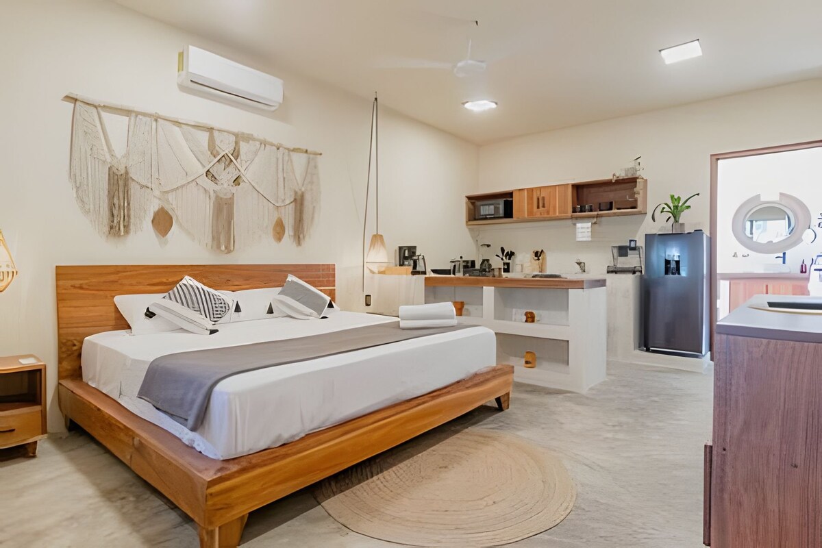 Sleep in this beautiful studio for couples surrounded by a lush jungle atmosphere. It has all the necessary amenities for you to have an excellent stay, in addition to offering you access to the lagoon through the Casa Bakal hotel that is right across the street! (It's the beautiful view in the main photo!) Do you have any questions? We look forward to answering you