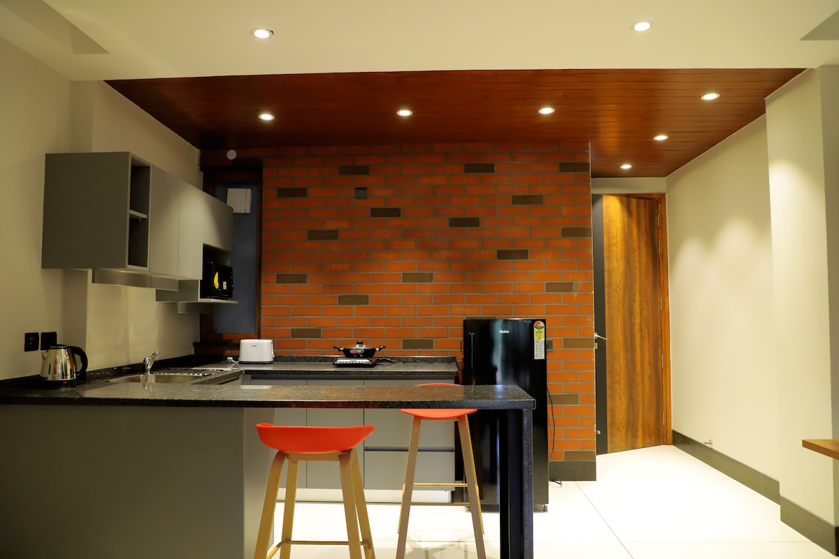 The Terrace Penthouse is completely private, expansive 2500 sqft. of luxurious space, engulfed in greenery, with all modern amenities and creature comforts comparable to a suite. Our location in Lutyens is posh, prime, and super convenient. The neighborhood is extremely safe, manned with guards, and 24/7 security surveillance. The caretaker will help with errands within the premises and is available 7 days a week. For your convenience, there is 1 dedicated parking space within the premises.