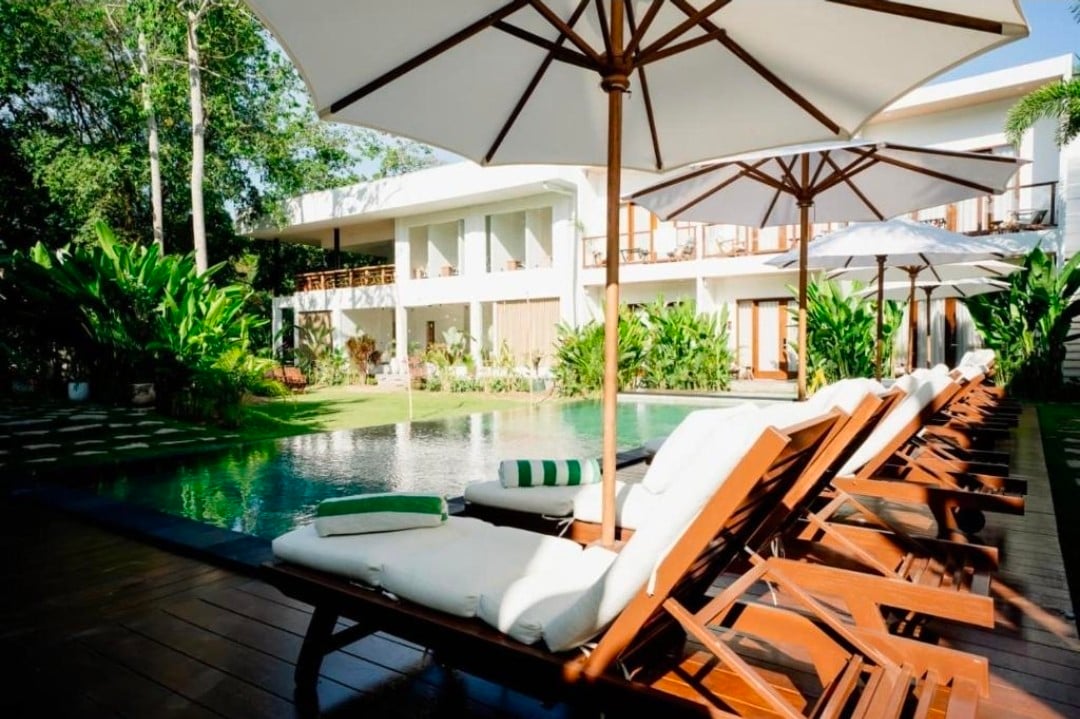 Sans Villas - The pool view room, is a room that is perfect for a couple and features a relaxing lounging space that gives you a gaze out to the pool view and the blooming Frangipani Flower. The room is equipped with Room Service, tea and coffee-making facilities, and bottled water. And it’s a walk away from the restaurant and the entrance, giving you easy access to your room.