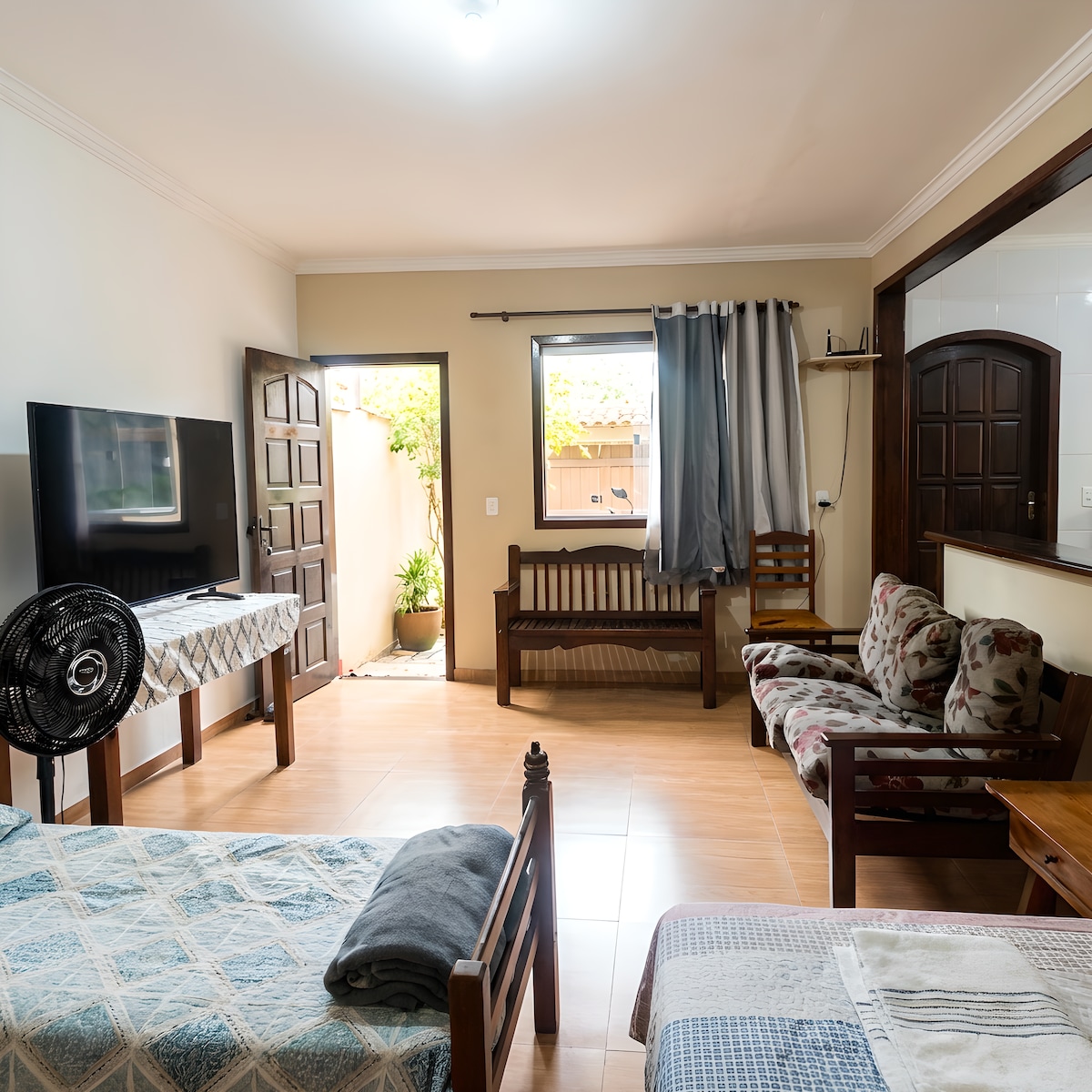Charming suite, with bathroom and individual kitchen. Cozy and well-equipped. Located on a quiet and safe street, with a market and bakery nearby. 200 meters from Jabaquara Beach and 1.5 km from the historical center.